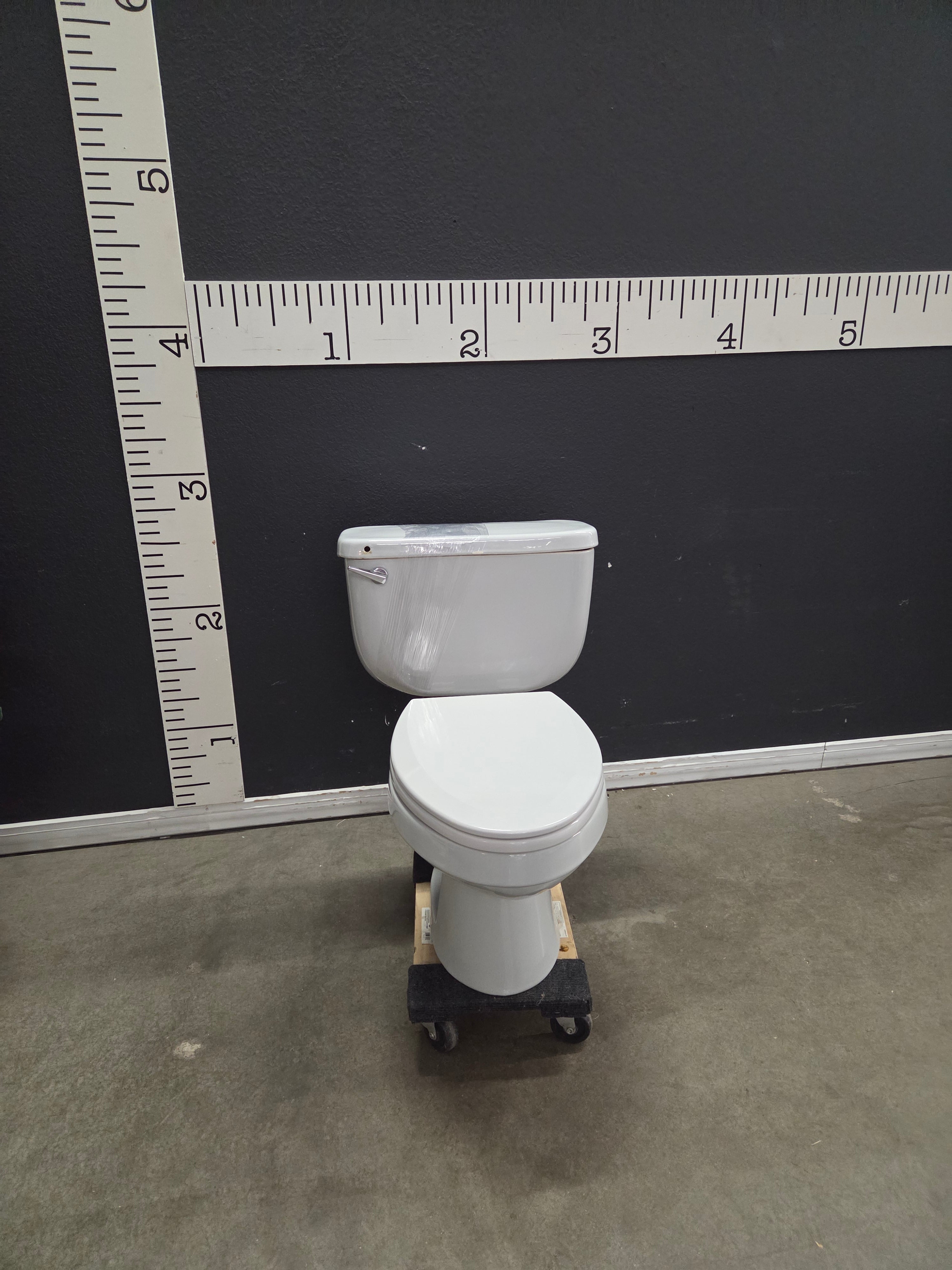 A sleek and modern white ceramic toilet with a glossy finish. This fixture combines functionality and style for any bathroom setting. Approximate Size: 2.5 x 1.5 x 2