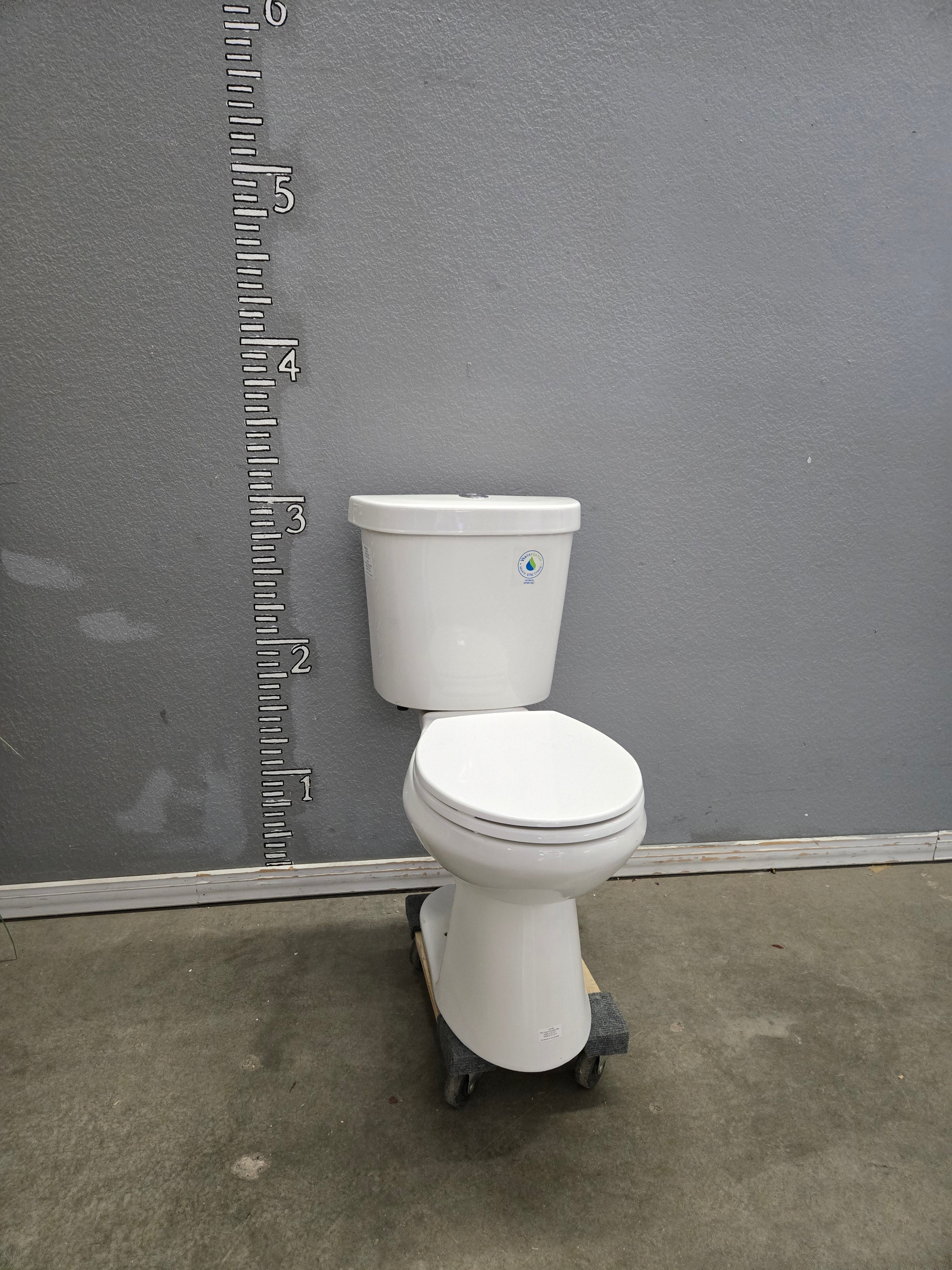 This sleek, modern toilet features a classic white ceramic finish, designed for efficiency and easy cleaning. Perfect for any bathroom setting, its compact design offers both style and function. Approximate Size: 2.5 x 1.5 x 2