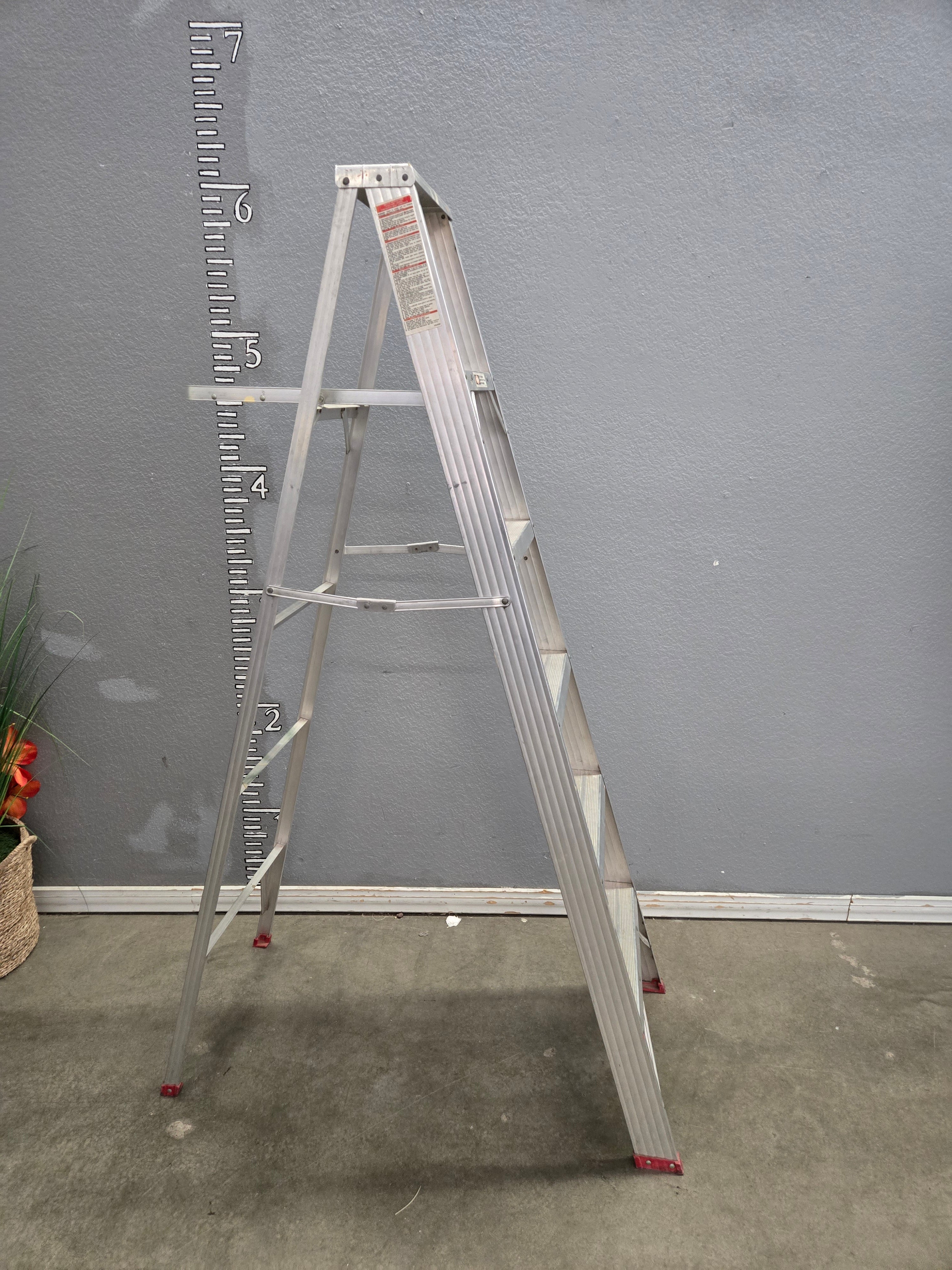 This durable aluminum step ladder features a silver finish and is perfect for household or light commercial use. It offers stability and reliable performance for reaching high areas. Approximate Size: 6 x 2 x 0.2
