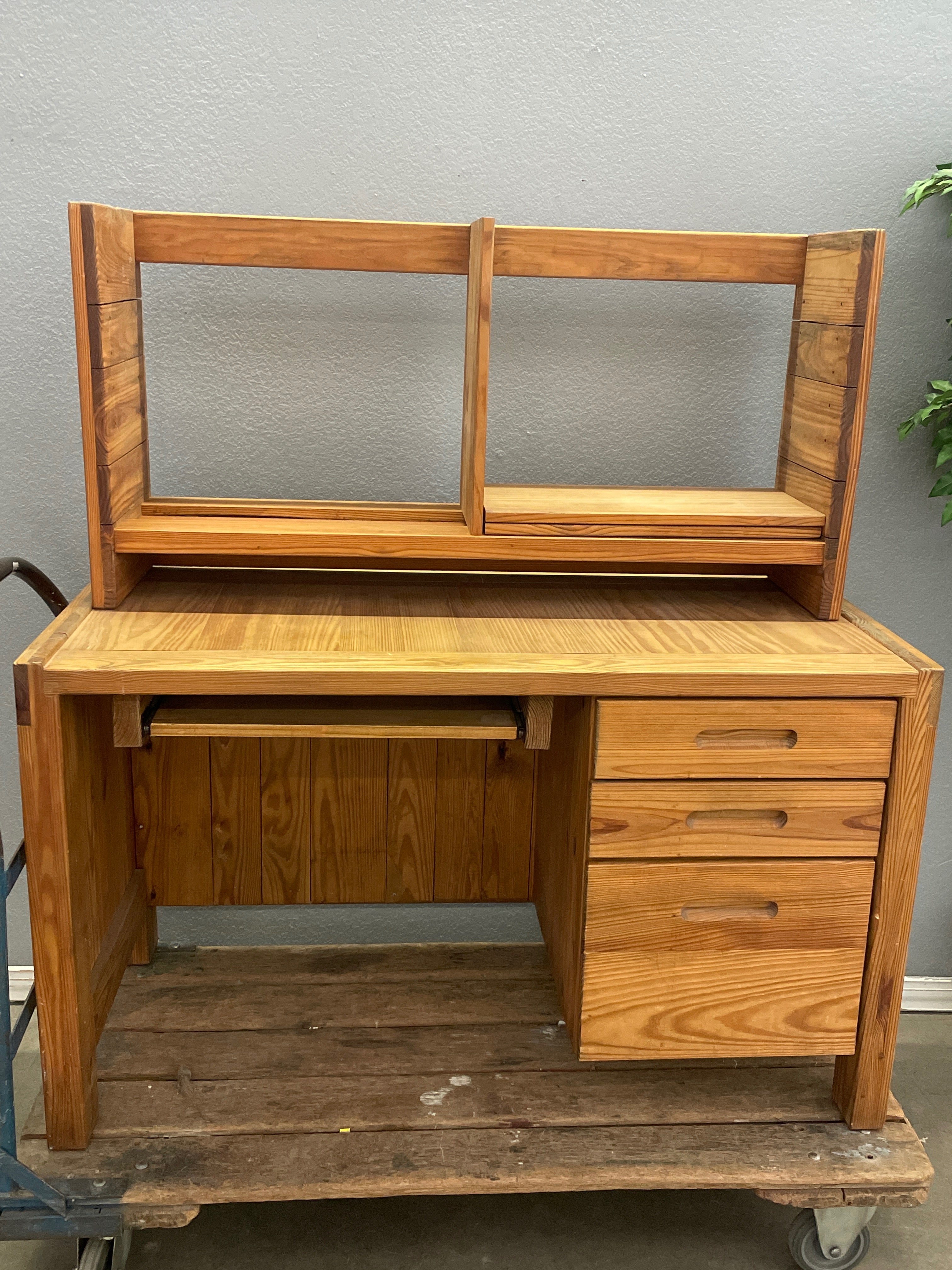 05163 Vintage Wooden Desk with Hutch and Storage Drawers