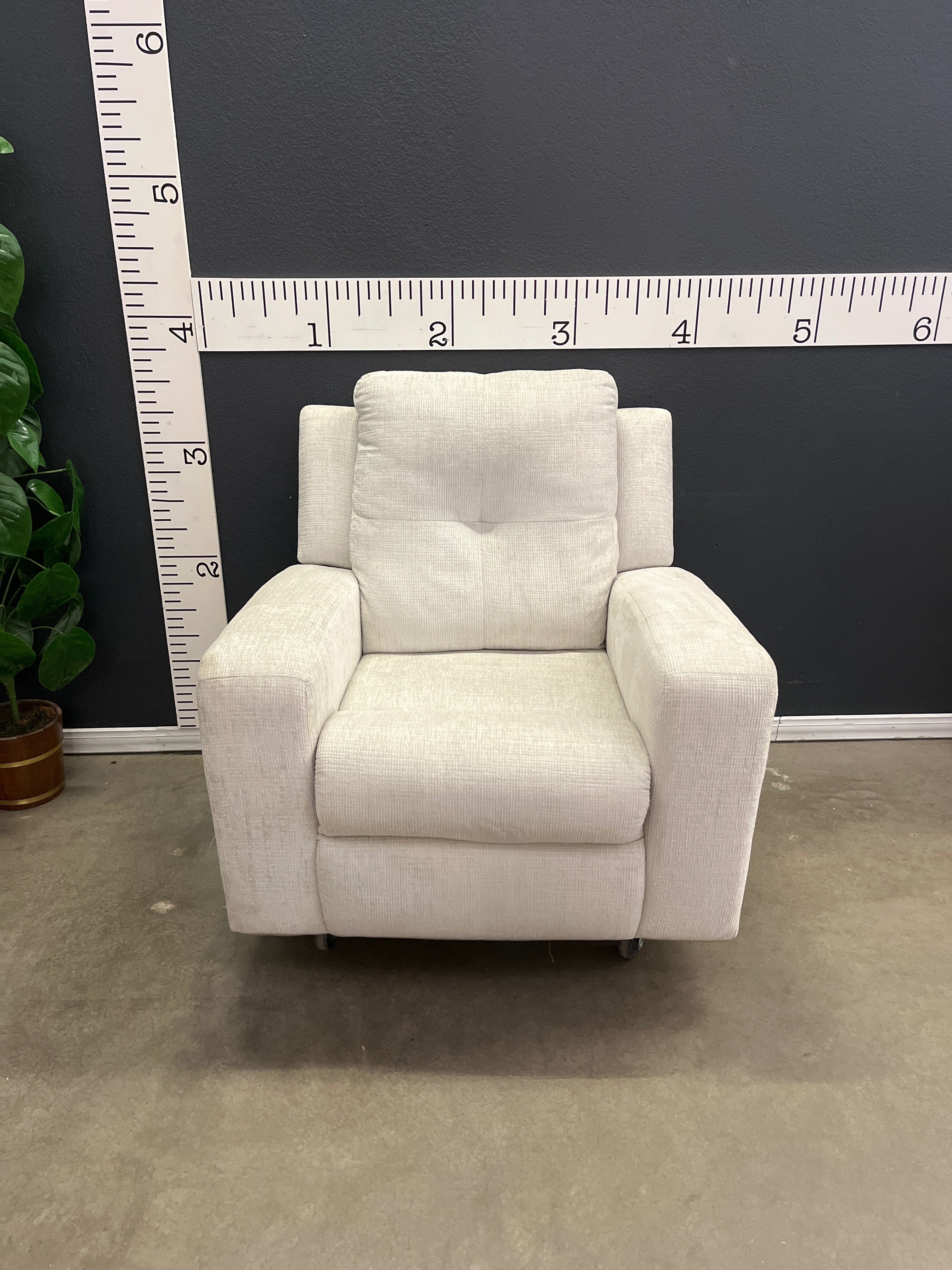 This modern armchair features a soft beige fabric with a smooth finish, providing both comfort and style. Ideal for adding a touch of elegance to any space. Approximate Size: 3 x 2.5 x 2.5