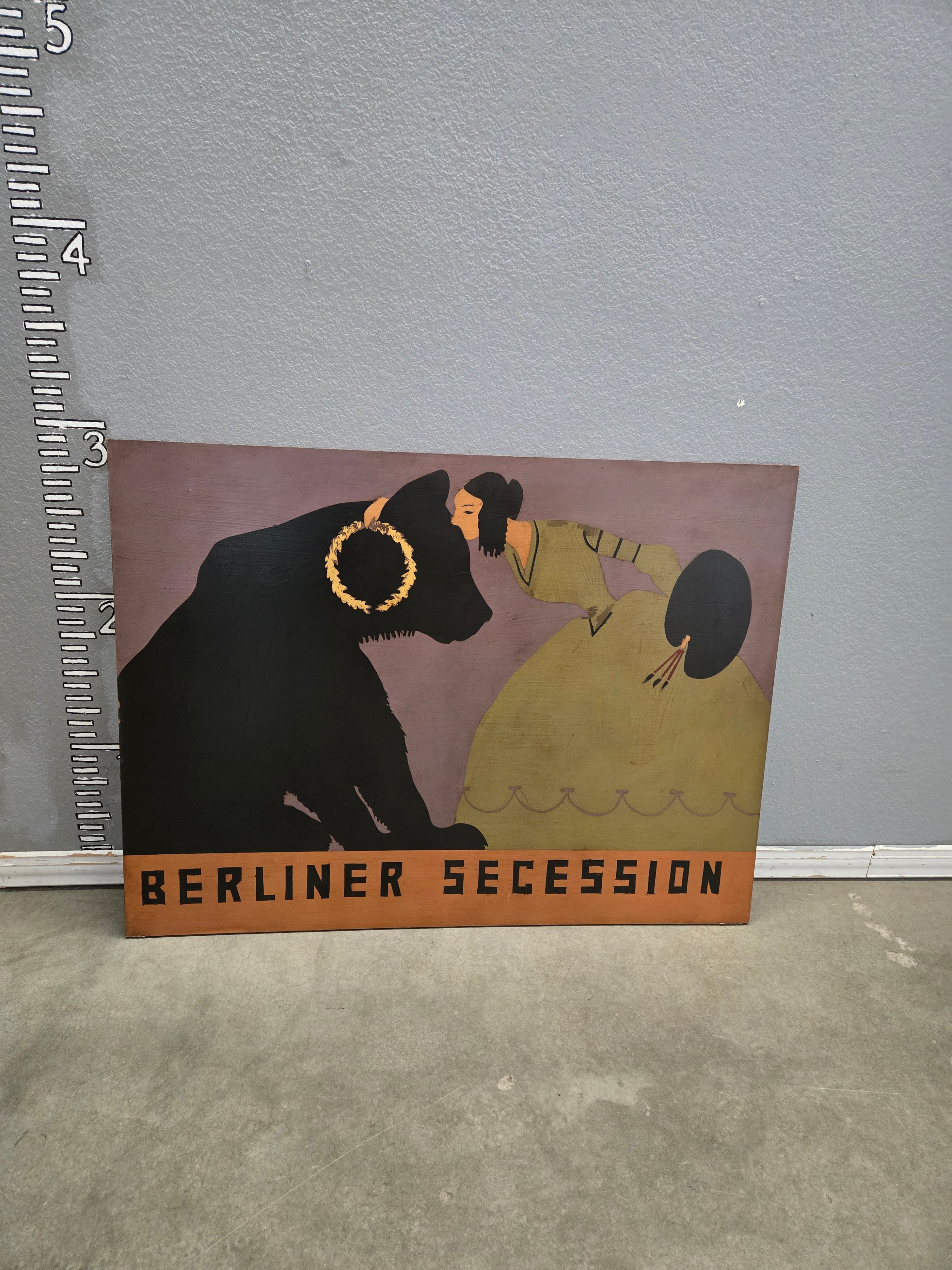 This vintage art poster features a striking design with a prominent black, yellow, and green color scheme on a muted purple background. The piece has a matte finish that highlights the bold artwork. Approximate Size: 2 x 3 x 0.1