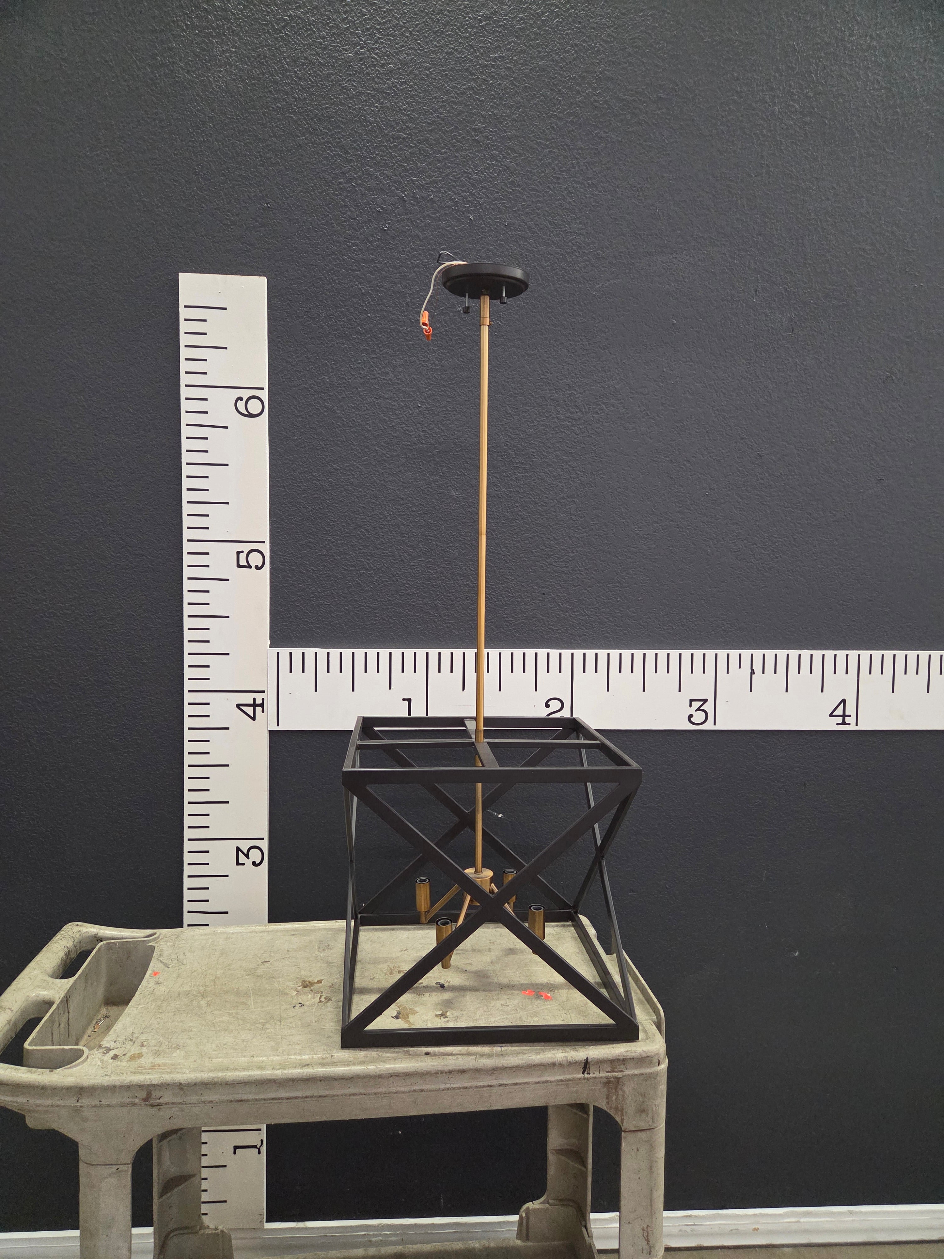 This industrial-style pendant light fixture features a sleek black metal frame with a matte finish. Its minimalist design adds a contemporary touch to any space. Approximate Size: 2 x 1 x 1