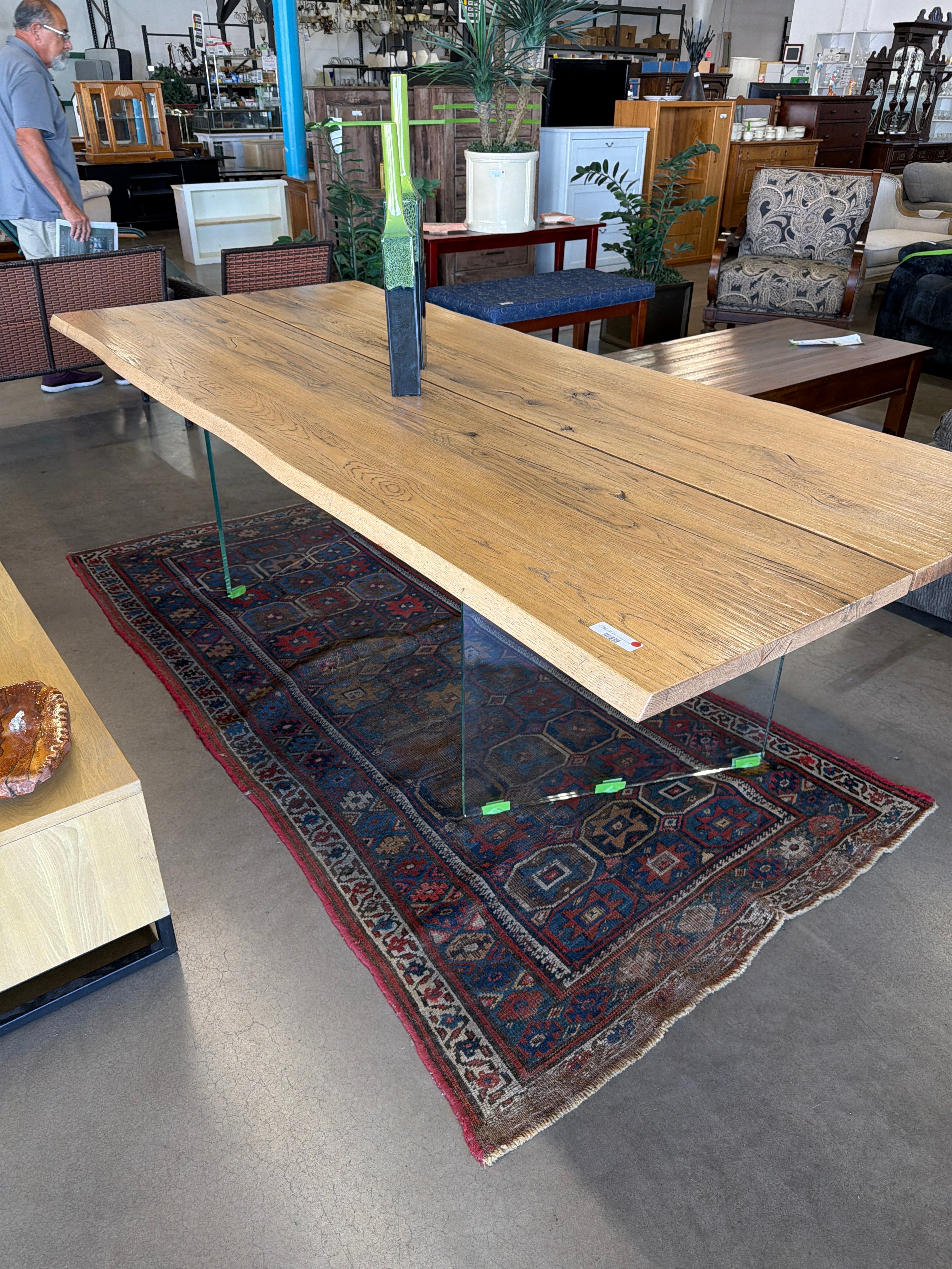 This elegant dining set features a modern solid oak table with a natural wood finishThe set is perfect for adding a touch of sophistication to your dining room. Approximate Size: 2.5 x 6 x 3