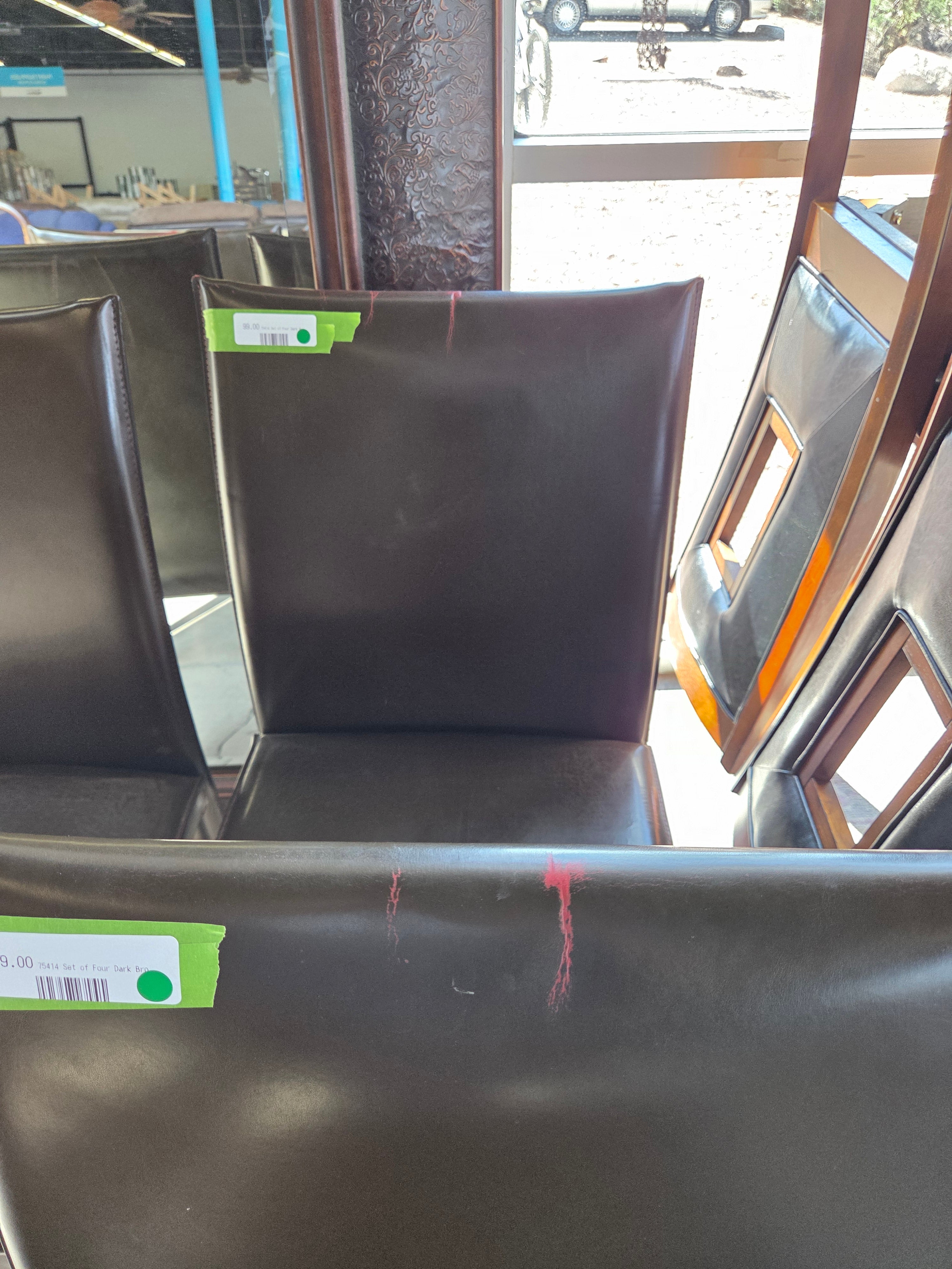 75414 Set of Four Dark Brown Faux Leather Dining Chairs