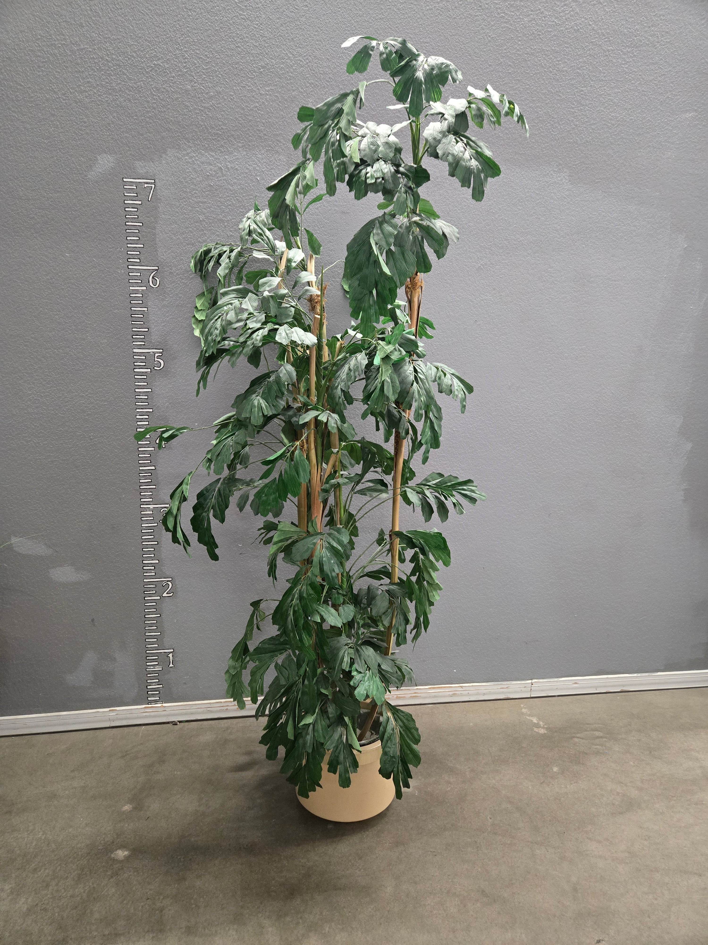 This lifelike artificial ficus tree features lush green foliage in a realistic finish, housed in a beige planter. Perfect for adding a touch of nature to any living space. Approximate Size: 6.5 x 2 x 2