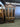 Elegant vintage cabinet featuring a rich brown wood finish with glass-front doors accentuated by decorative crosshatch patterns. The cabinet offers ample storage with lower wooden panels and a classic design. Approximate Size: 7 x 3.5 x 1.5