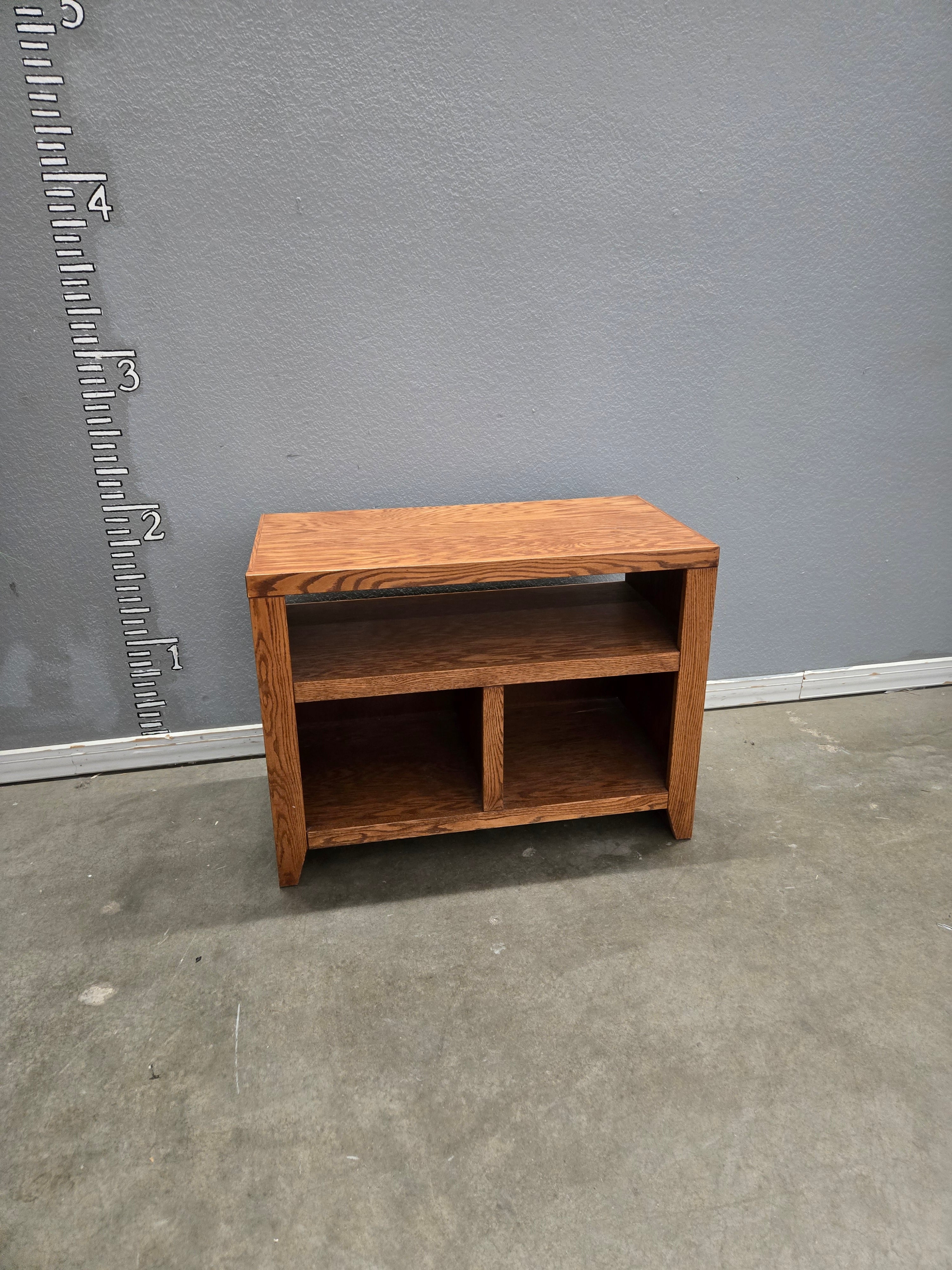 This console table features a warm oak color with a smooth wood finish, perfect for adding a rustic touch to your living space. The open shelf design provides ample storage for books or decorative items. Approximate Size: 2 x 3 x 1
