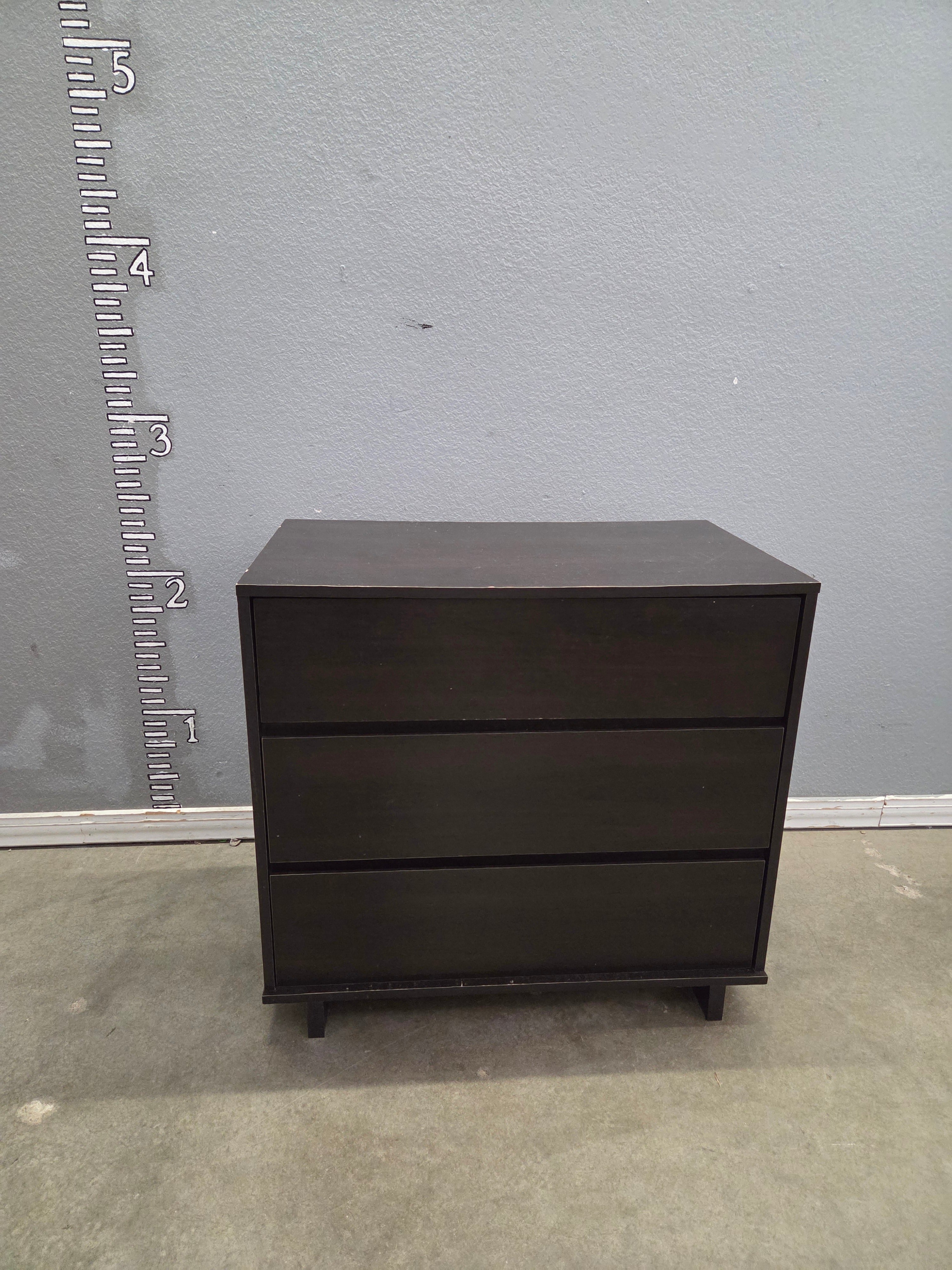 A sleek and modern wooden dresser with a matte black finish, featuring three spacious drawers for ample storage. Approximate Size: 3 x 2.5 x 1.5
