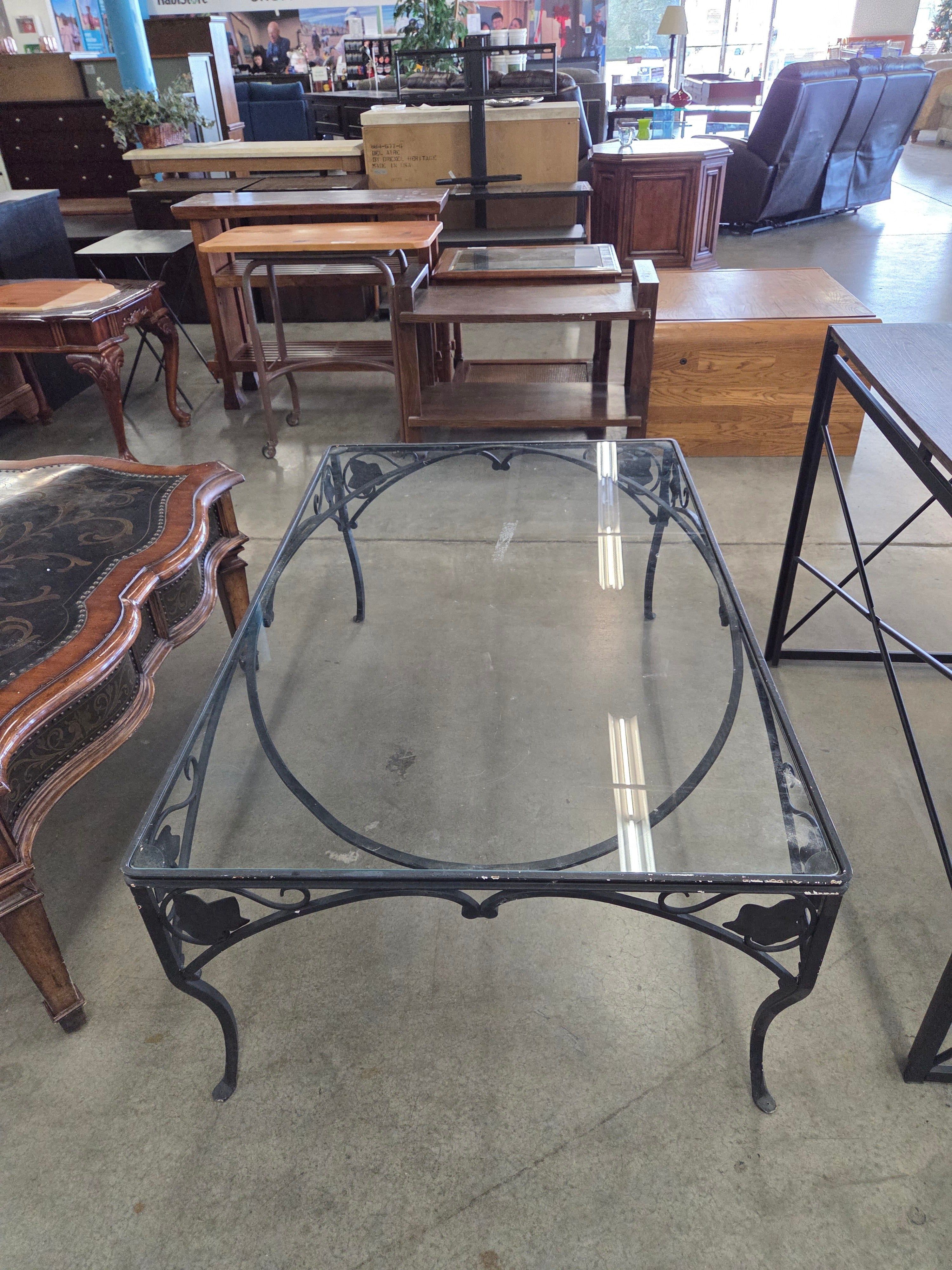 45085 Vintage Wrought Iron Glass Coffee Table