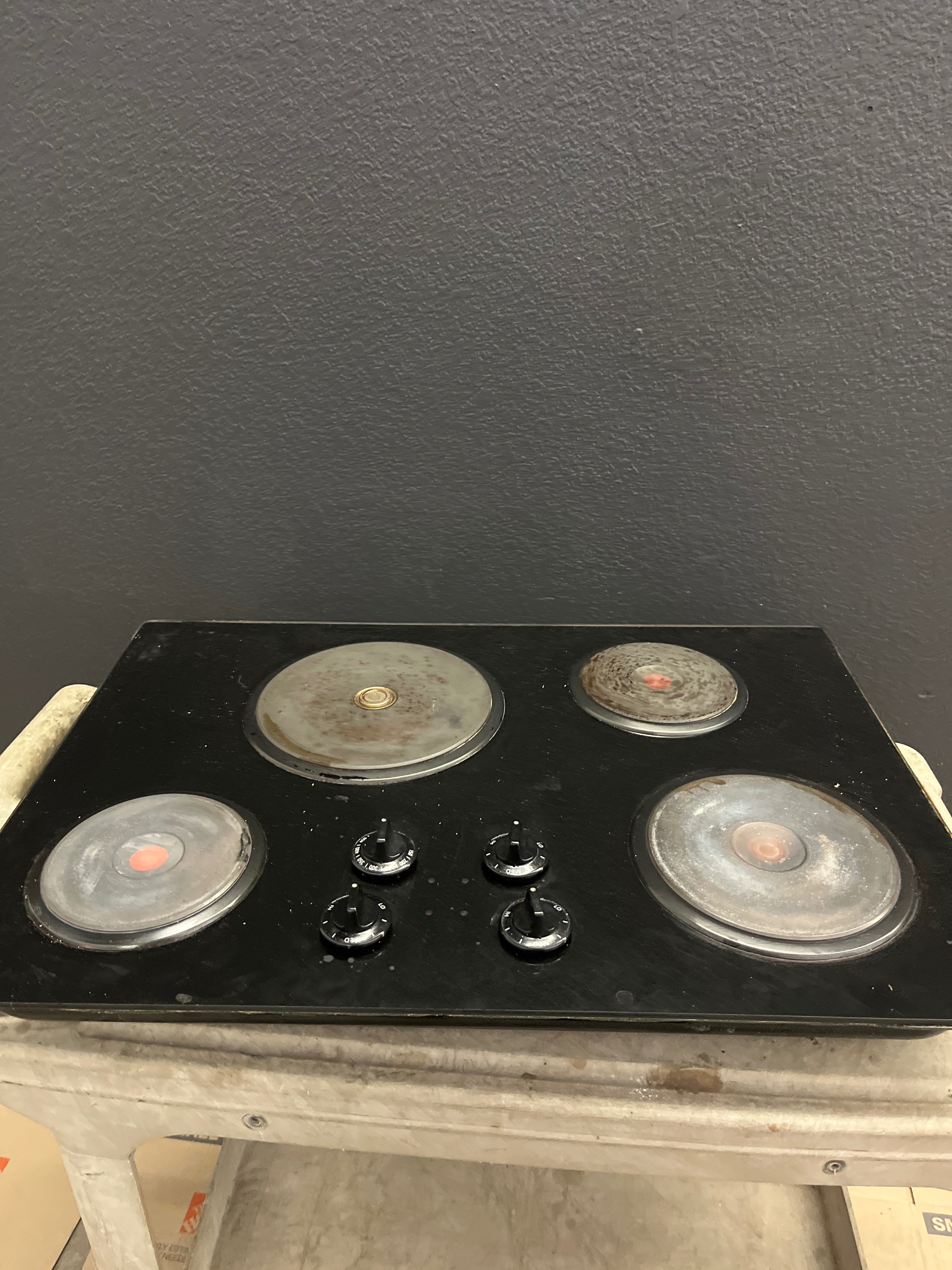 This vintage electric stovetop features a classic black finish with durable metal burners. Perfect for a retro kitchen setup or as a functional decor piece. Approximate Size: 0.5 x 2 x 1.5