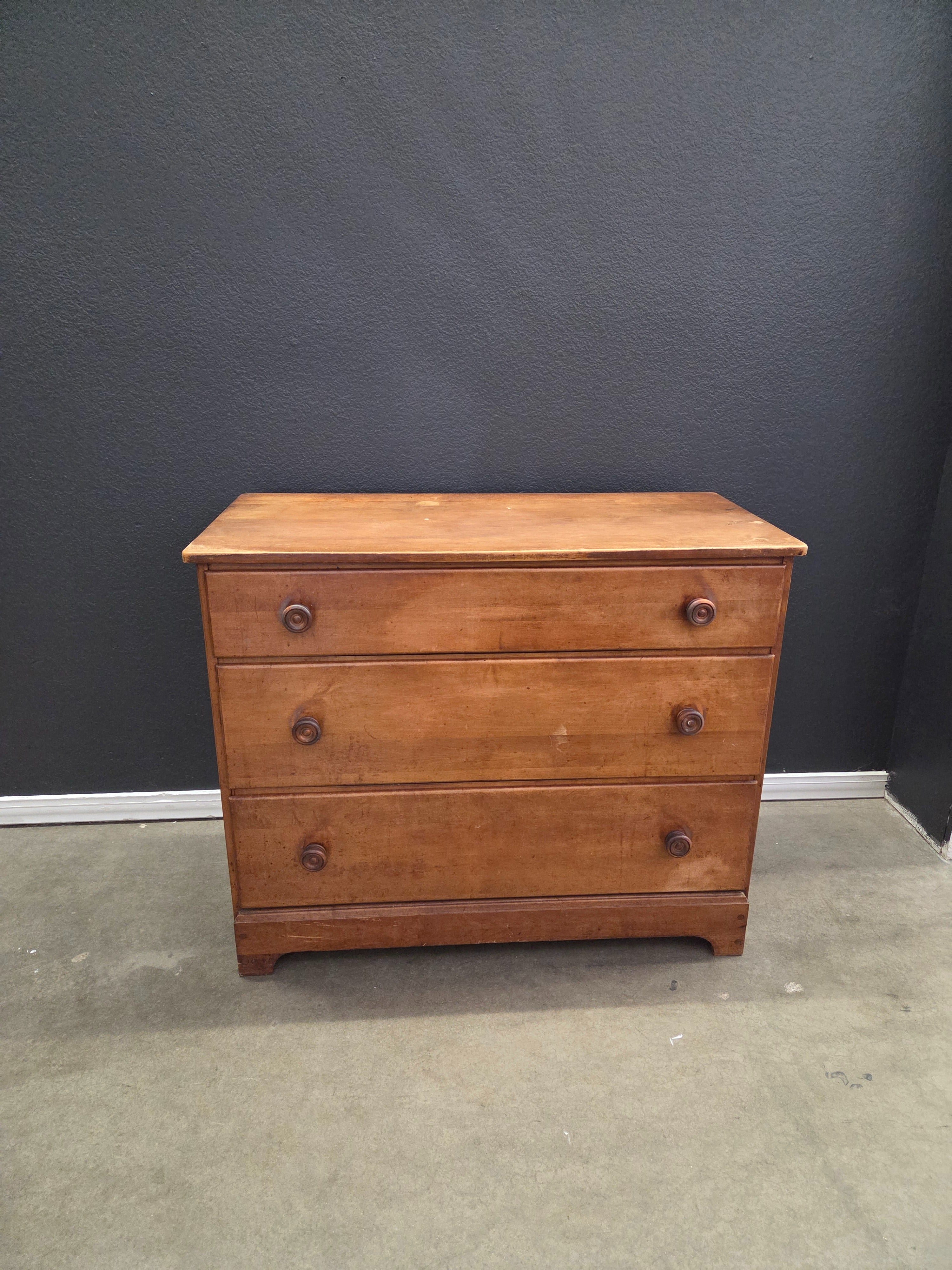 This classic vintage dresser features a warm, natural wood finish, showcasing its timeless appeal and sturdy design. Perfect for adding a rustic charm to any living space. Approximate Size: 3 x 3 x 1.5