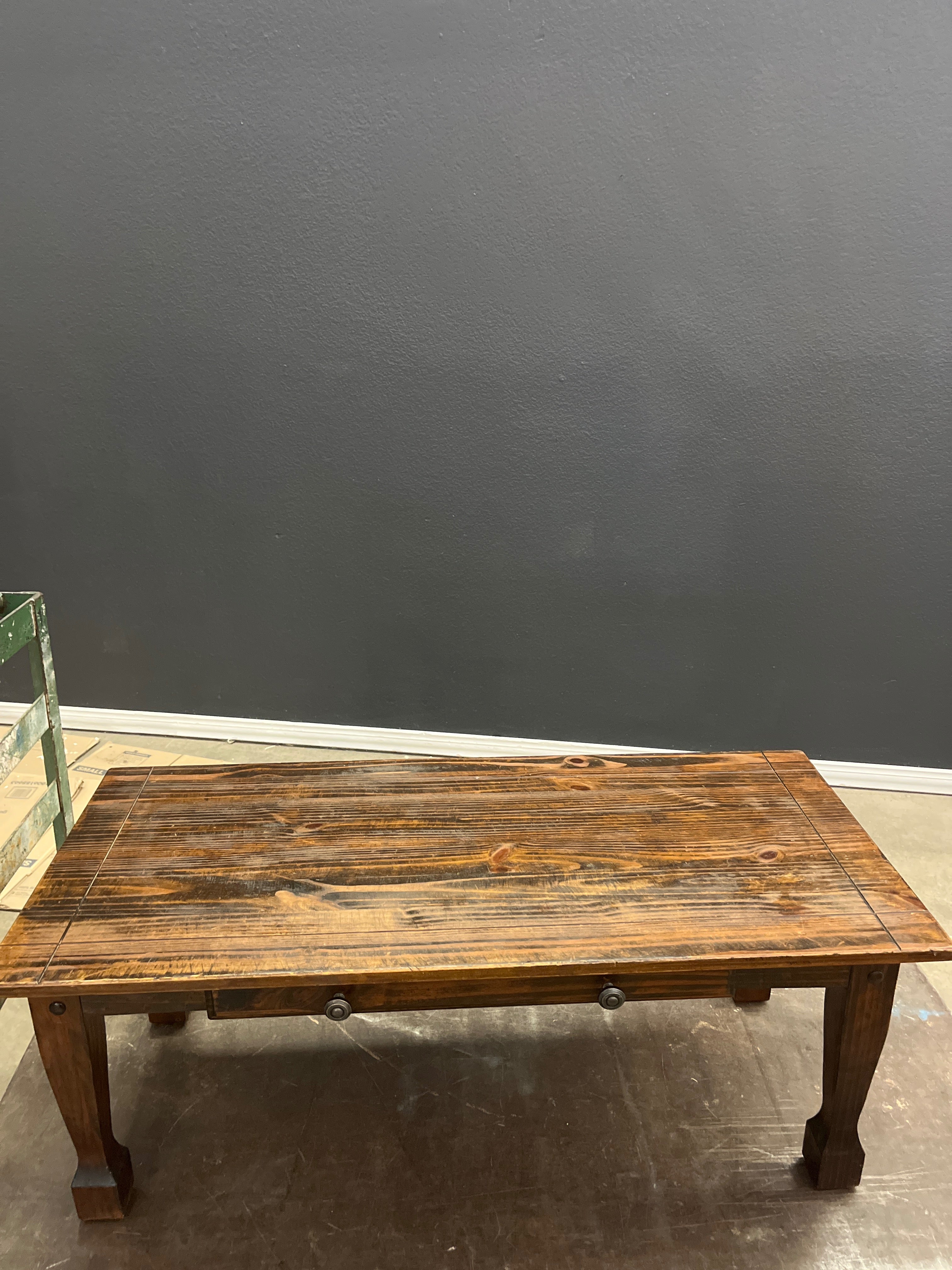 This beautifully crafted coffee table features a rich, dark brown finish with a rustic wood grain texture that adds warmth and charm to any living room decor. Approximate Size: 1.5 x 4 x 2