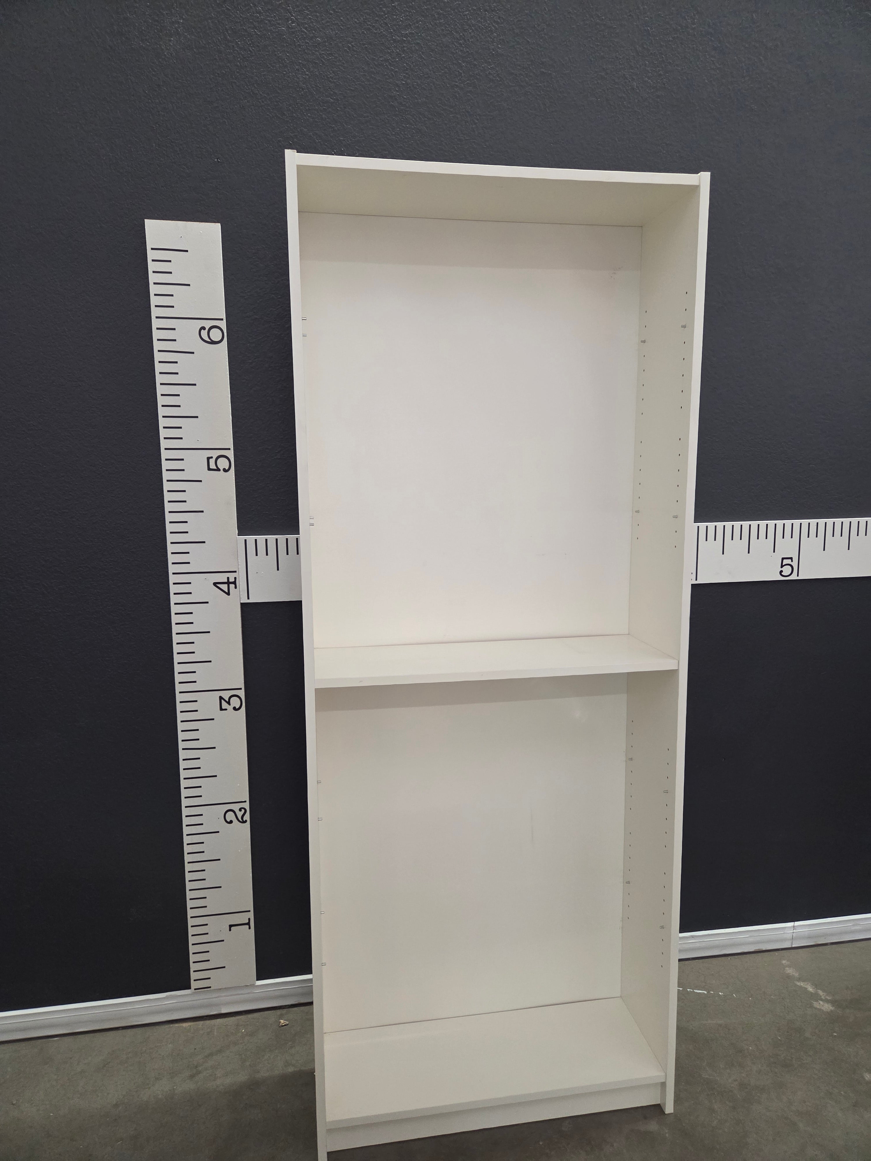 A sleek white bookcase with a smooth finish, featuring adjustable shelving for versatile storage options. Approximate Size: 5 x 2 x 1