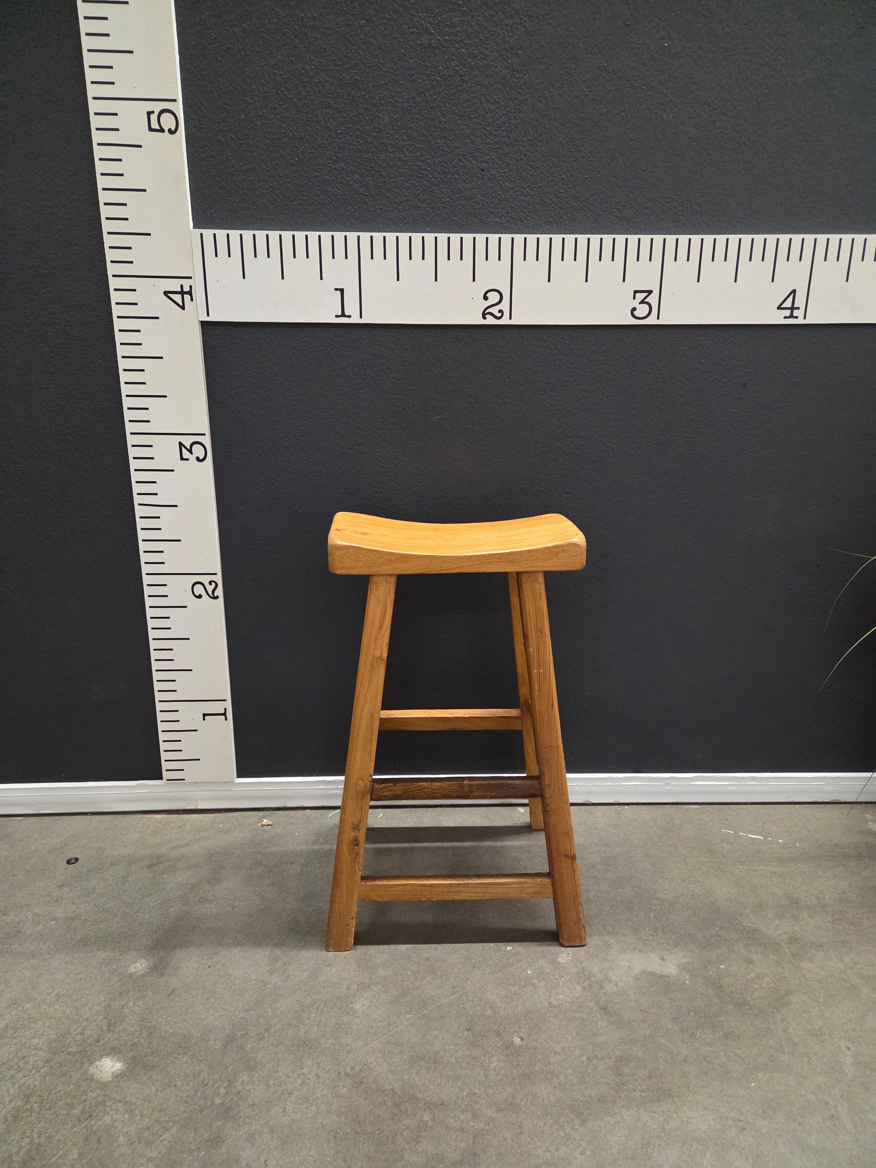 A natural finish solid wood bar stool with a contoured seat for comfort. Ideal for casual seating. Approximate Size: 2.5 x 1.5 x 1.5