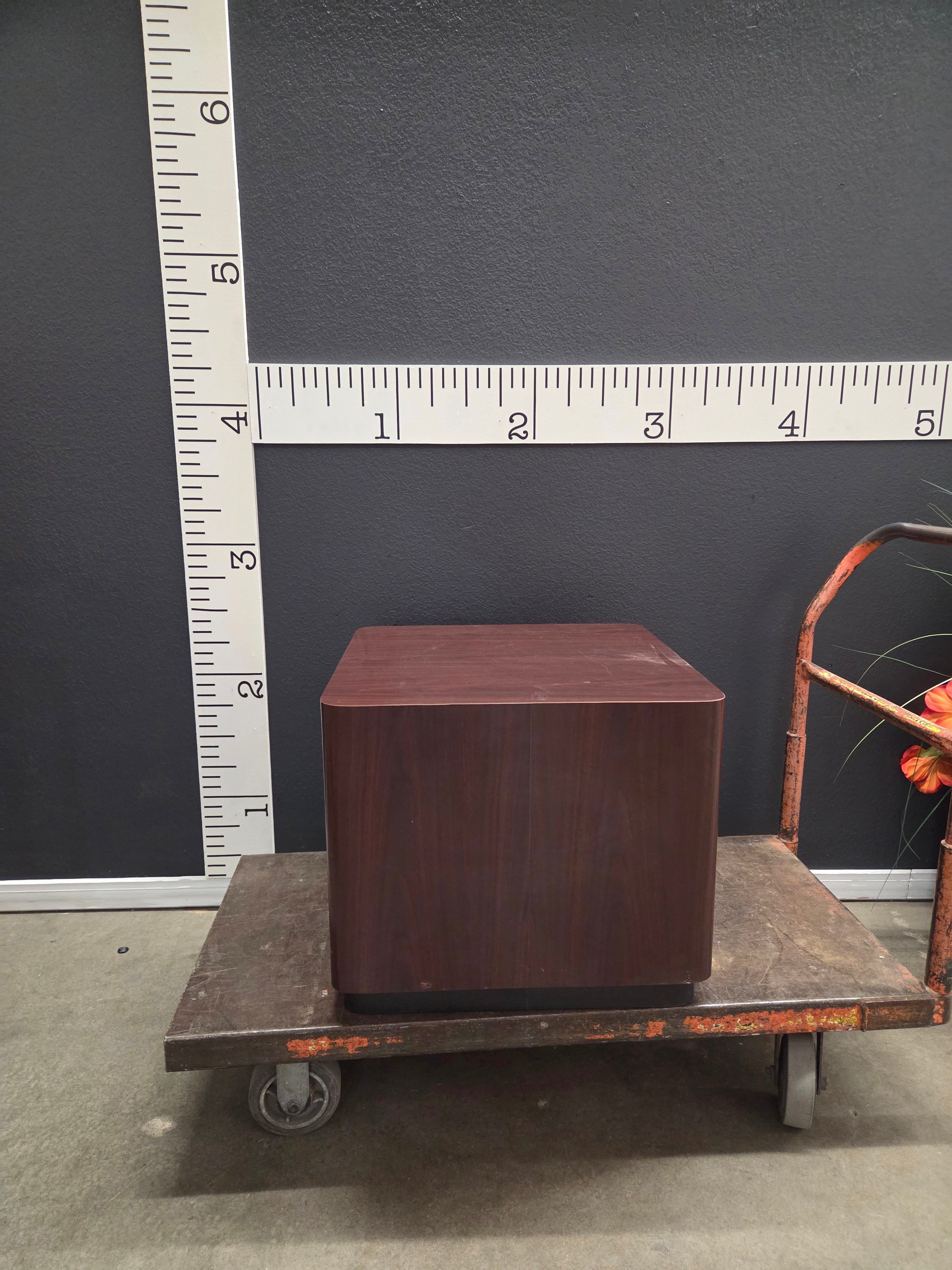 Rich mahogany-colored side table with a smooth finish, perfect for adding a touch of elegance to any living room. The table's classic design features gentle curves and a solid build. Approximate Size: 2 x 2 x 2