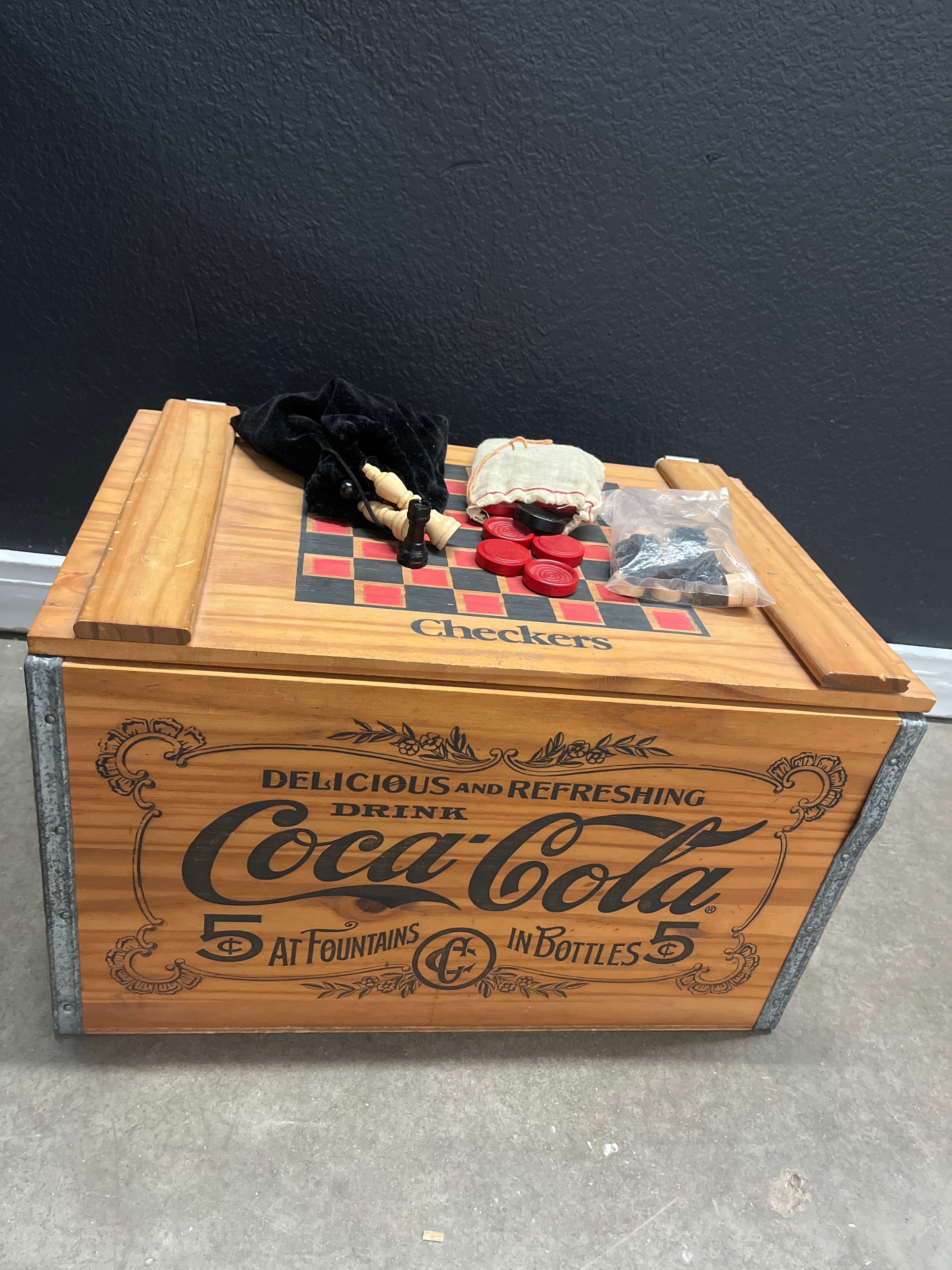 78167 Vintage Coca-Cola Wooden Checkers Storage Box