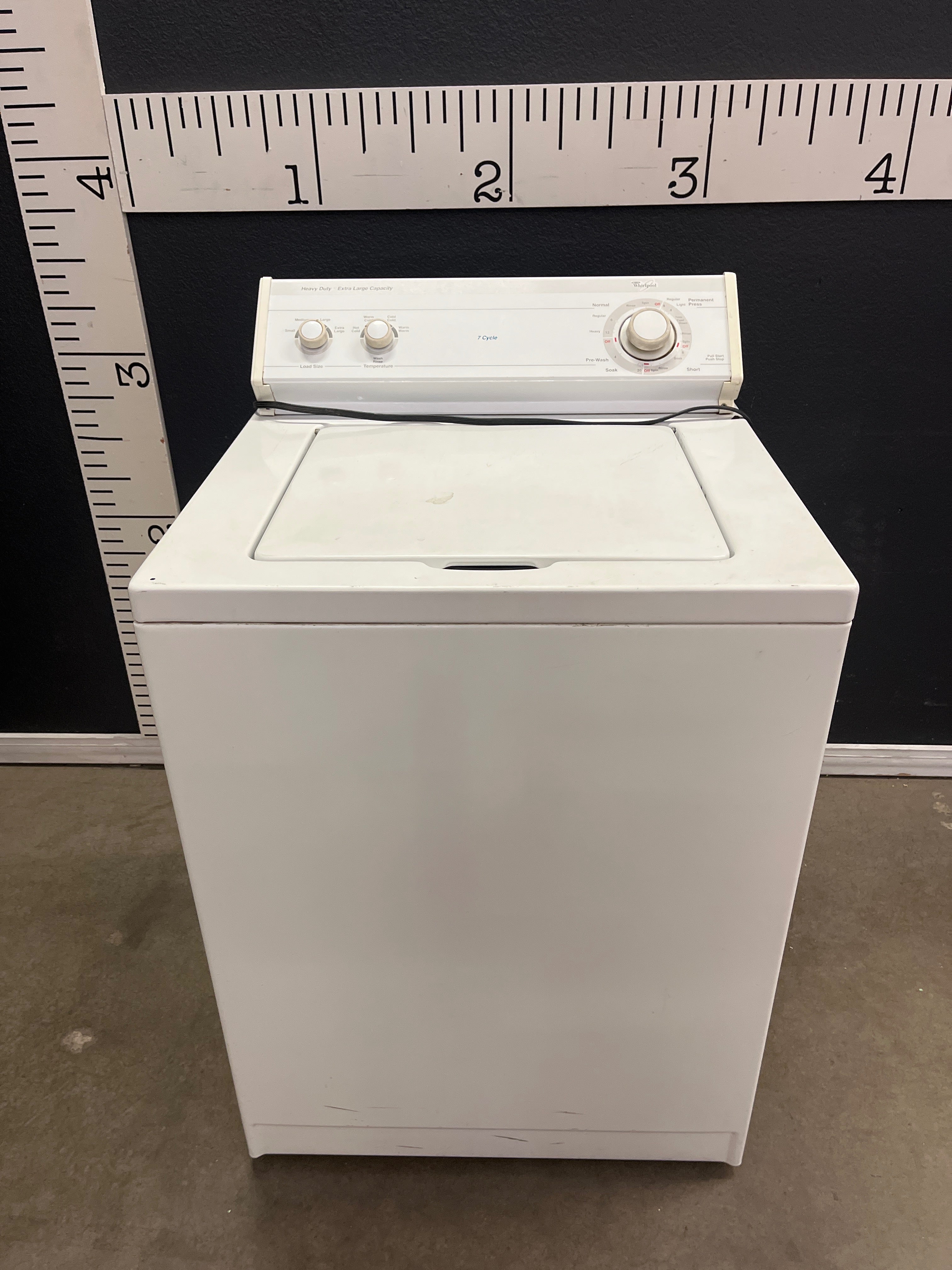 This washing machine features a classic white finish and an easy-to-use top-load design. Perfect for efficiently handling your laundry needs. Approximate Size: 3 x 2.5 x 2.5