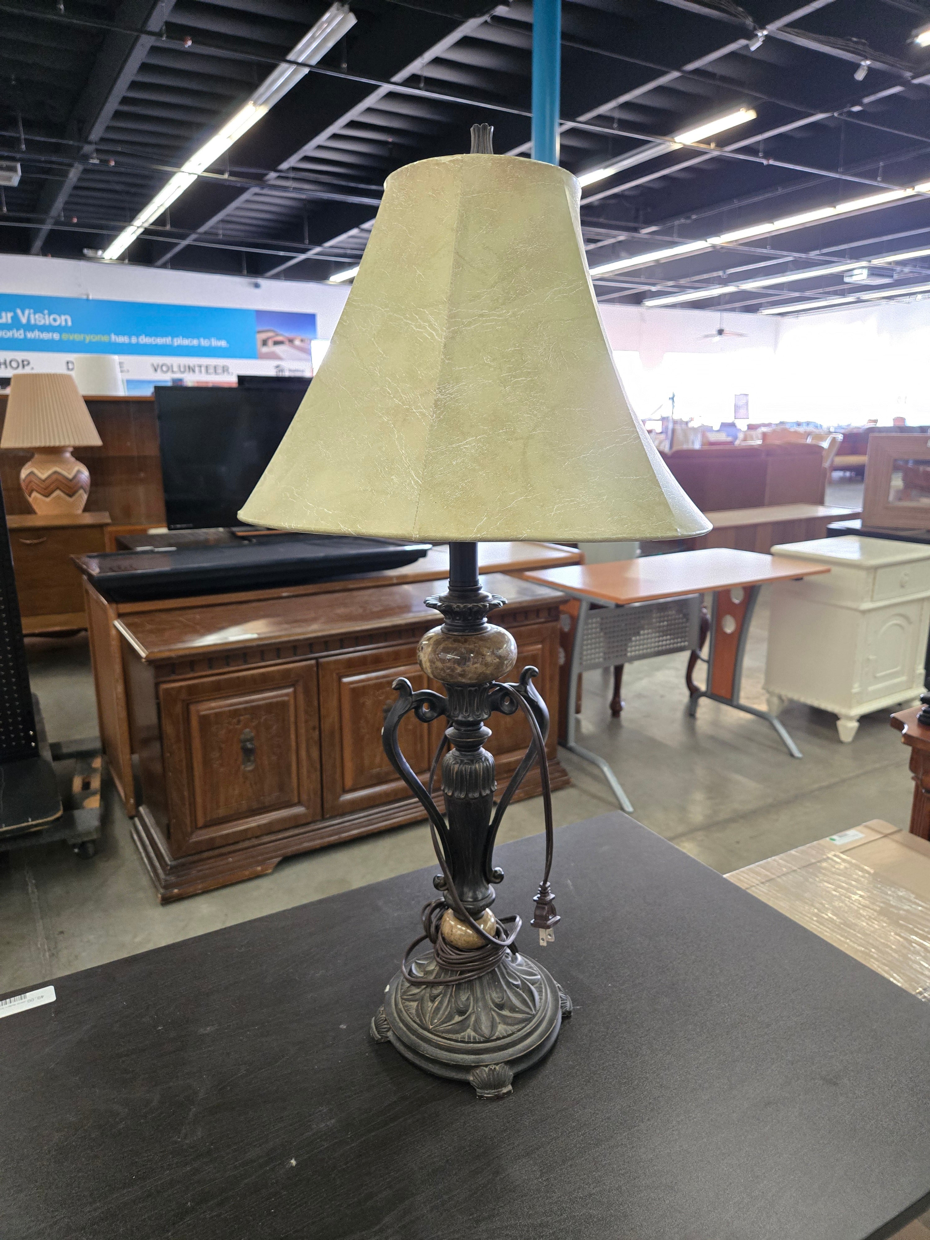 78671 Vintage Bronze Table Lamp with Fabric Shade - 30 Day Guarantee !