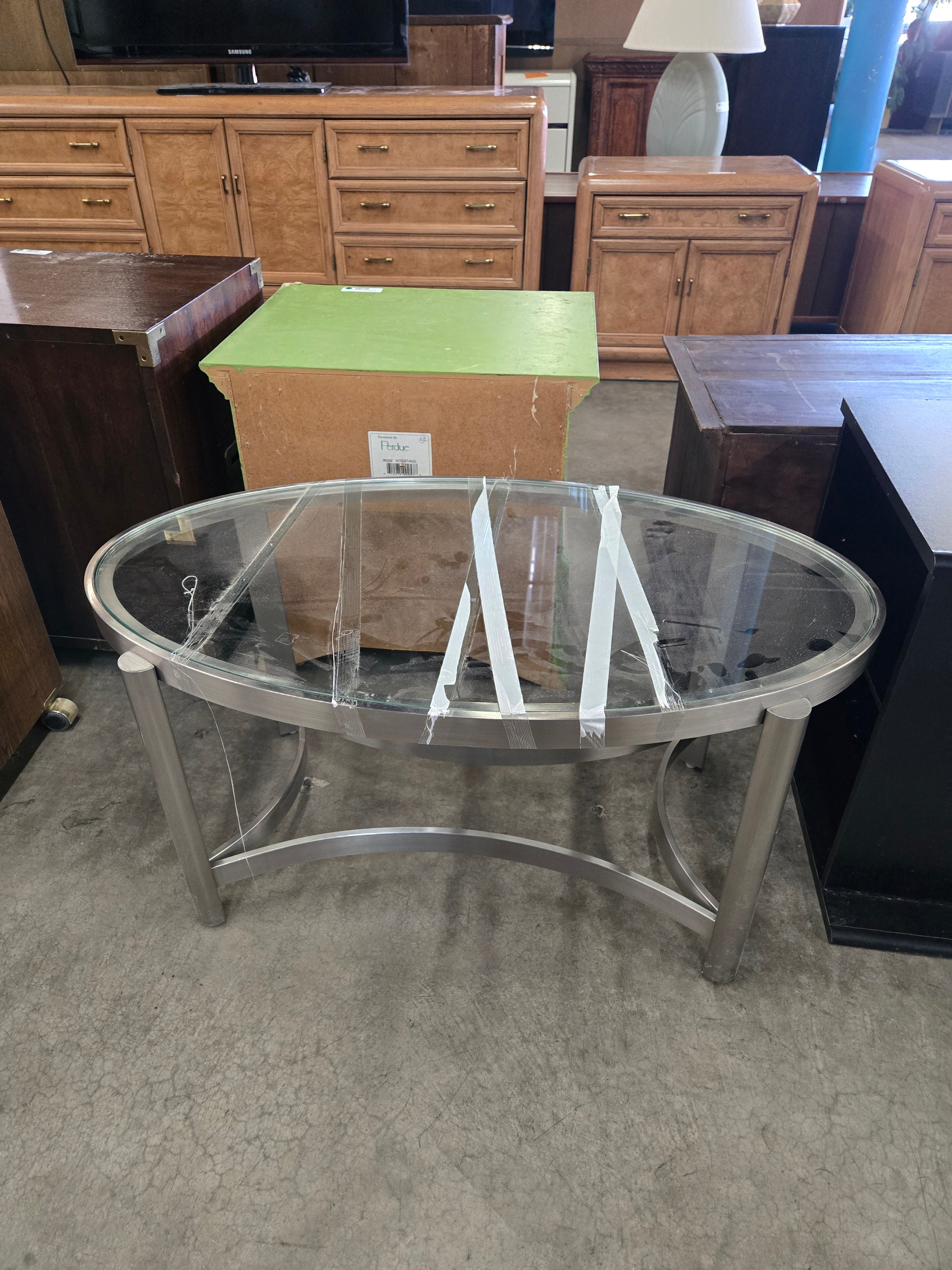 40949 Oval Glass Coffee Table with Metal Frame