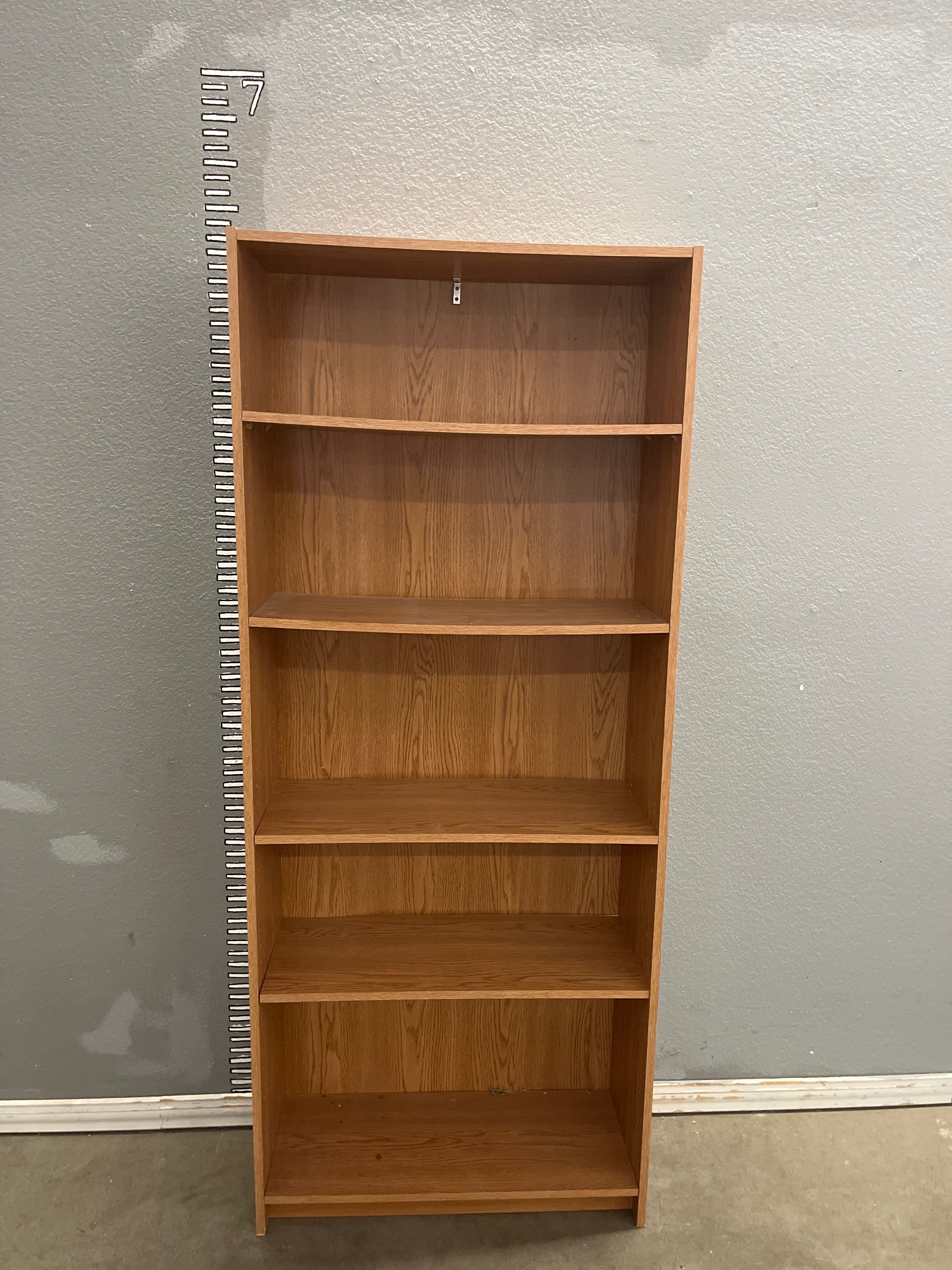 This sturdy bookshelf features a natural oak wood finish, perfect for adding warmth and style to any room. With five adjustable shelves, this piece provides ample space for books, decorative items, and more. Approximate Size: 6 x 2 x 1
