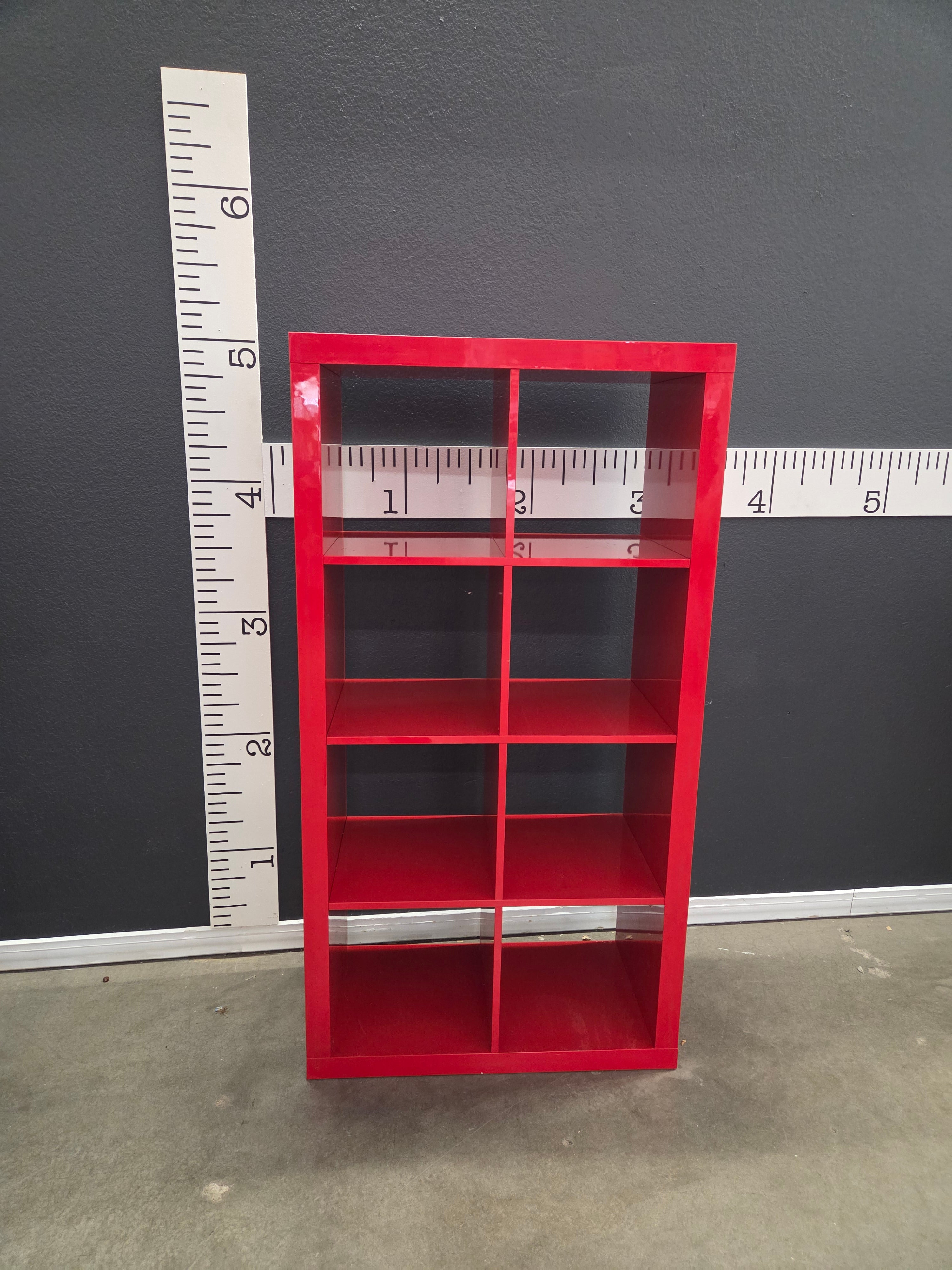 Vibrant red cube organizer with a glossy finish, perfect for modern living spaces or offices. Approximate Size: 3.5 x 2 x 1