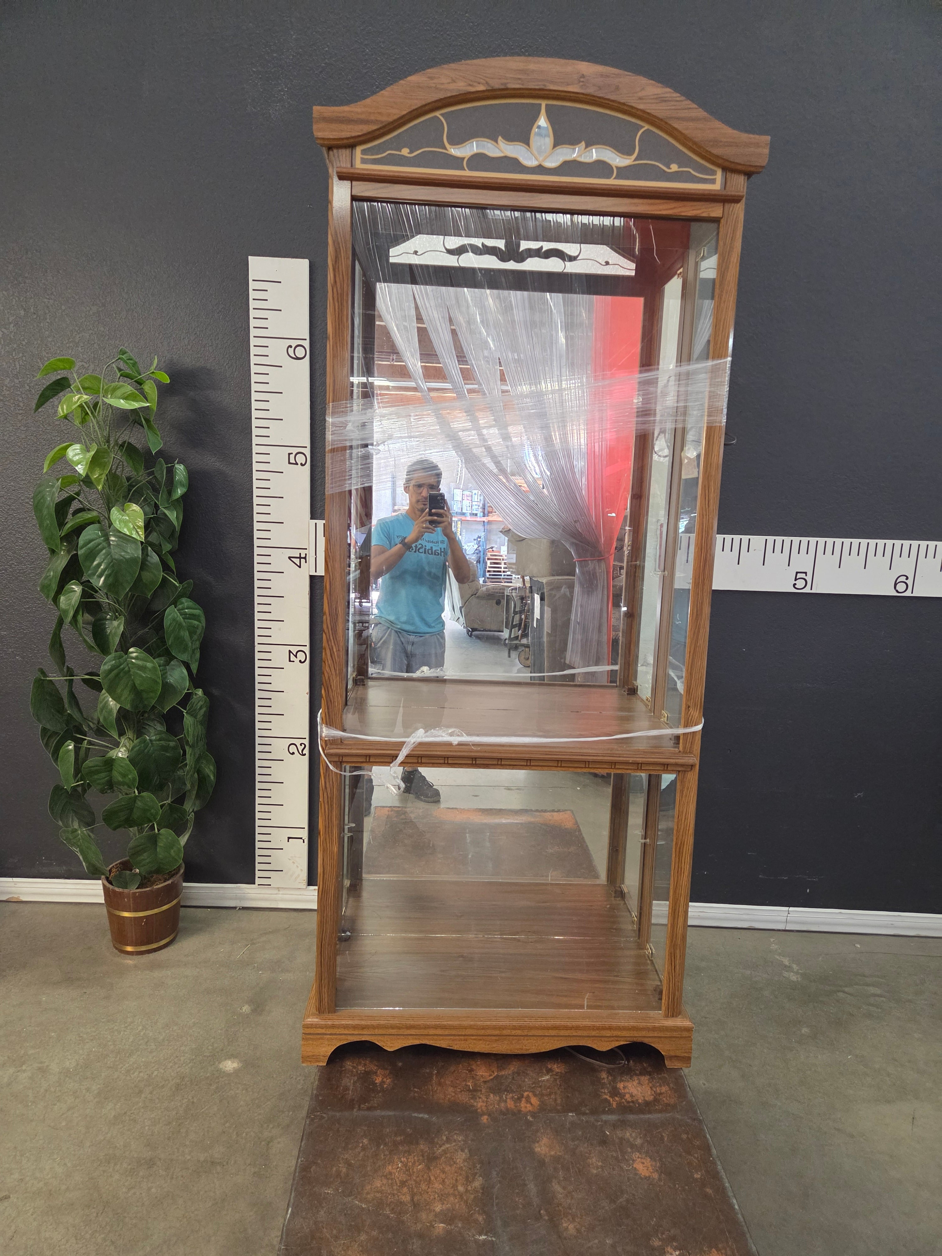 31904 Vintage Oak Curio Cabinet with Glass Shelves