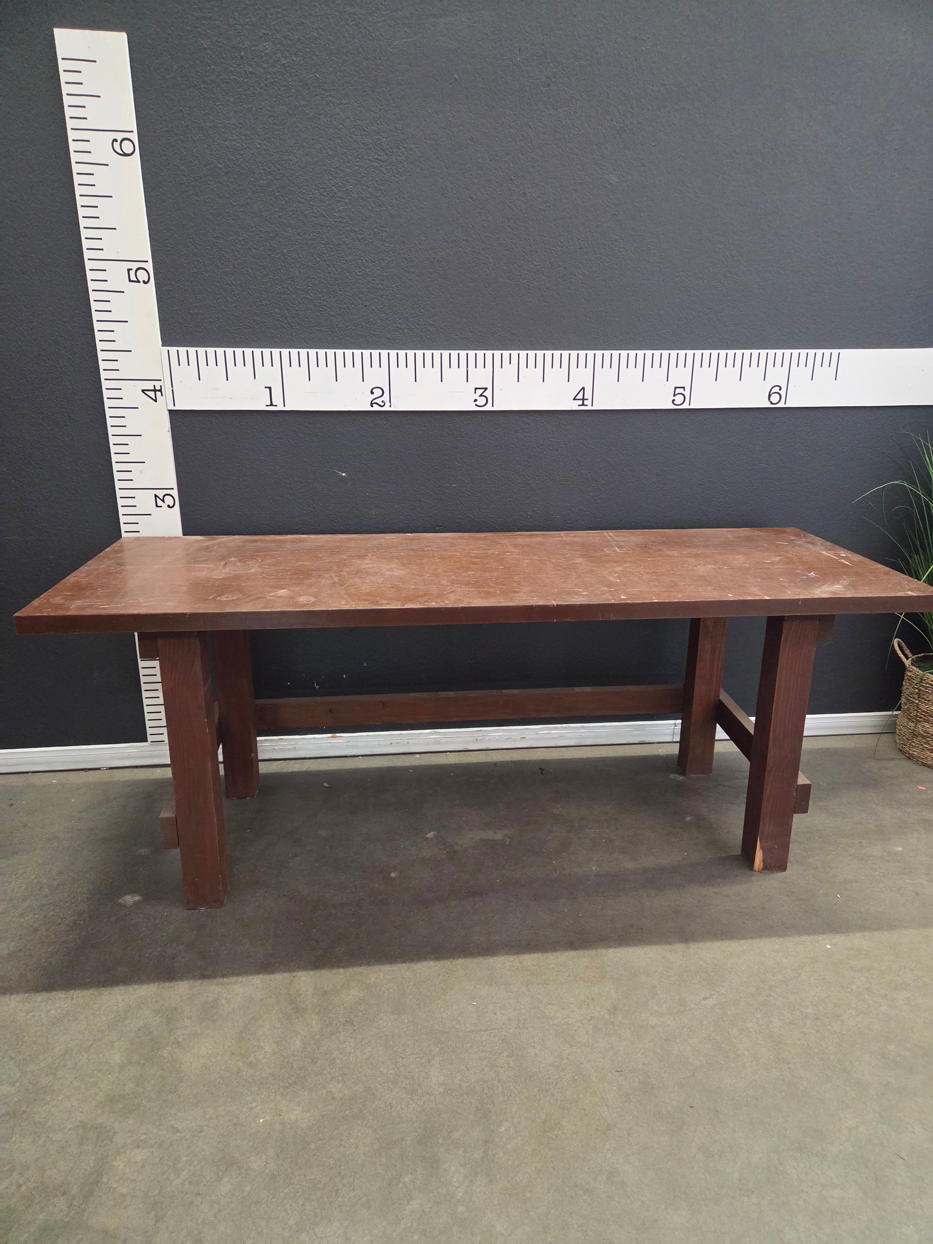 This sturdy wooden bench features a rich brown finish, perfect for adding a rustic touch to your space. Its simple design offers both functionality and charm. Approximate Size: 2 x 5 x 1.5