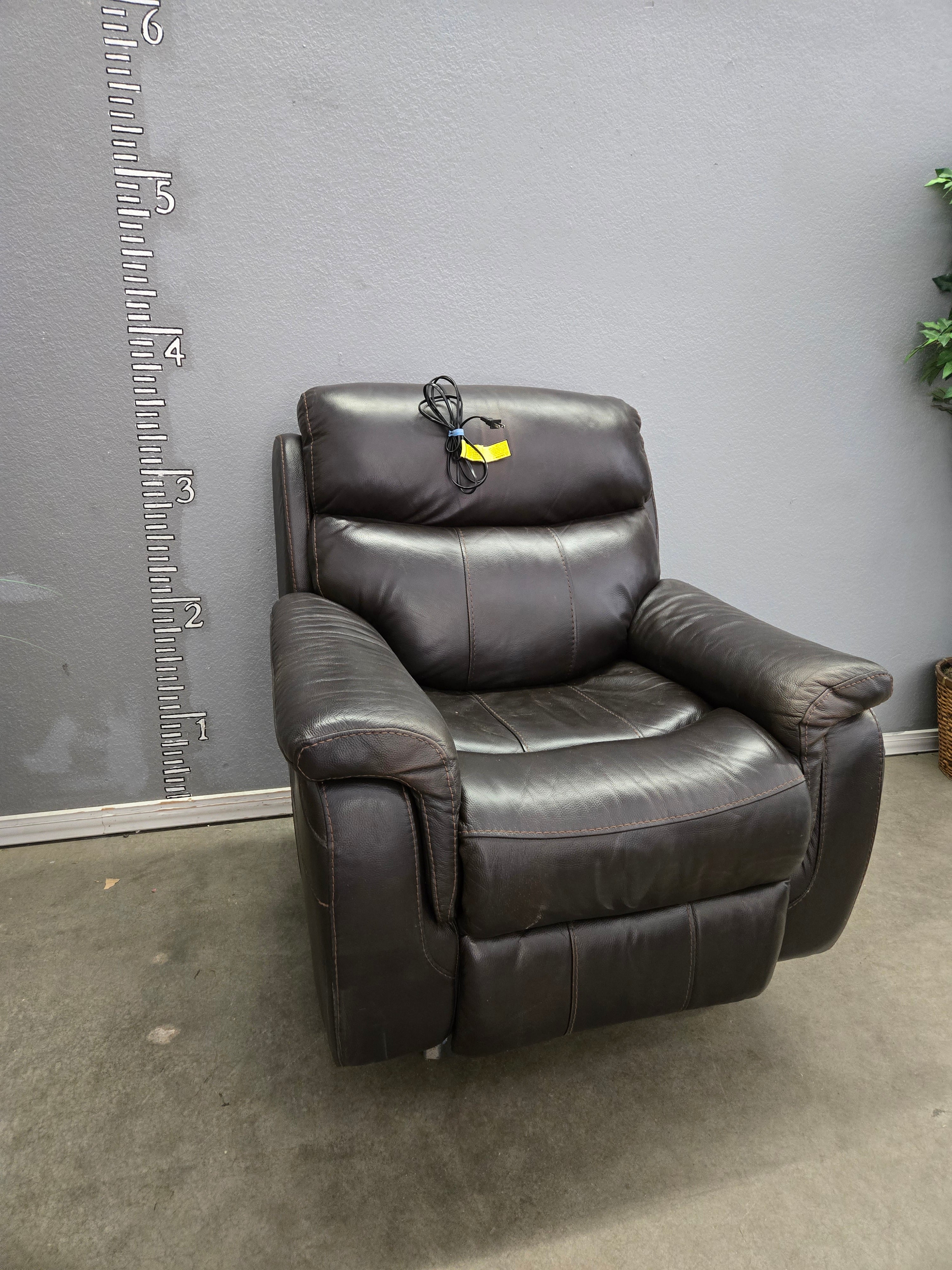 This luxurious recliner chair features a rich dark brown faux leather finish, offering both sophistication and comfort. Perfect for the Living Room, the plush padding and adjustable reclining mechanisms ensure ultimate relaxation. Approximate Size: 4.5 x 3 x 3