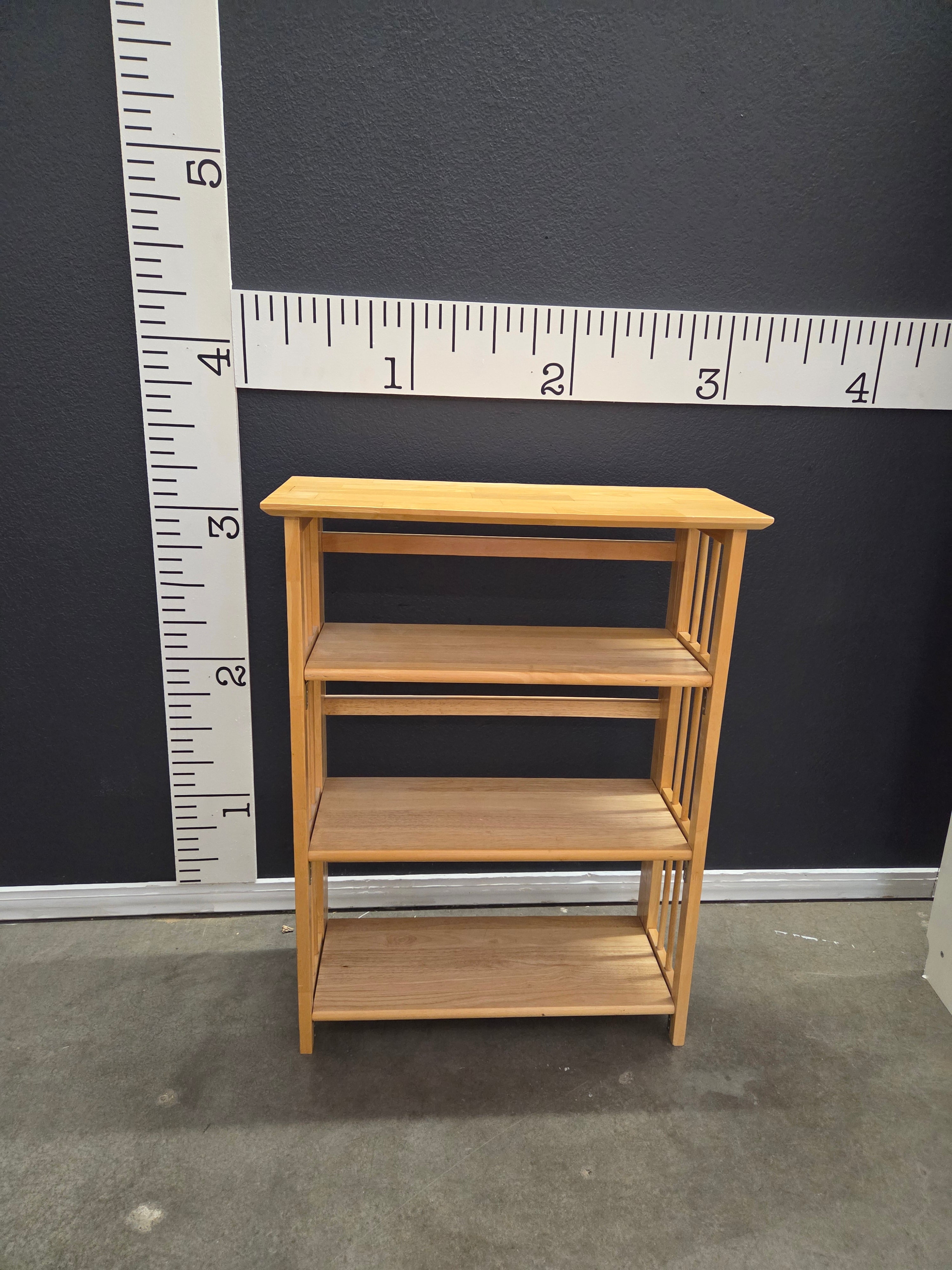 Natural wood finish bookshelf with three shelves, offering a minimalist design perfect for any room decor. Approximate Size: 3 x 2 x 1
