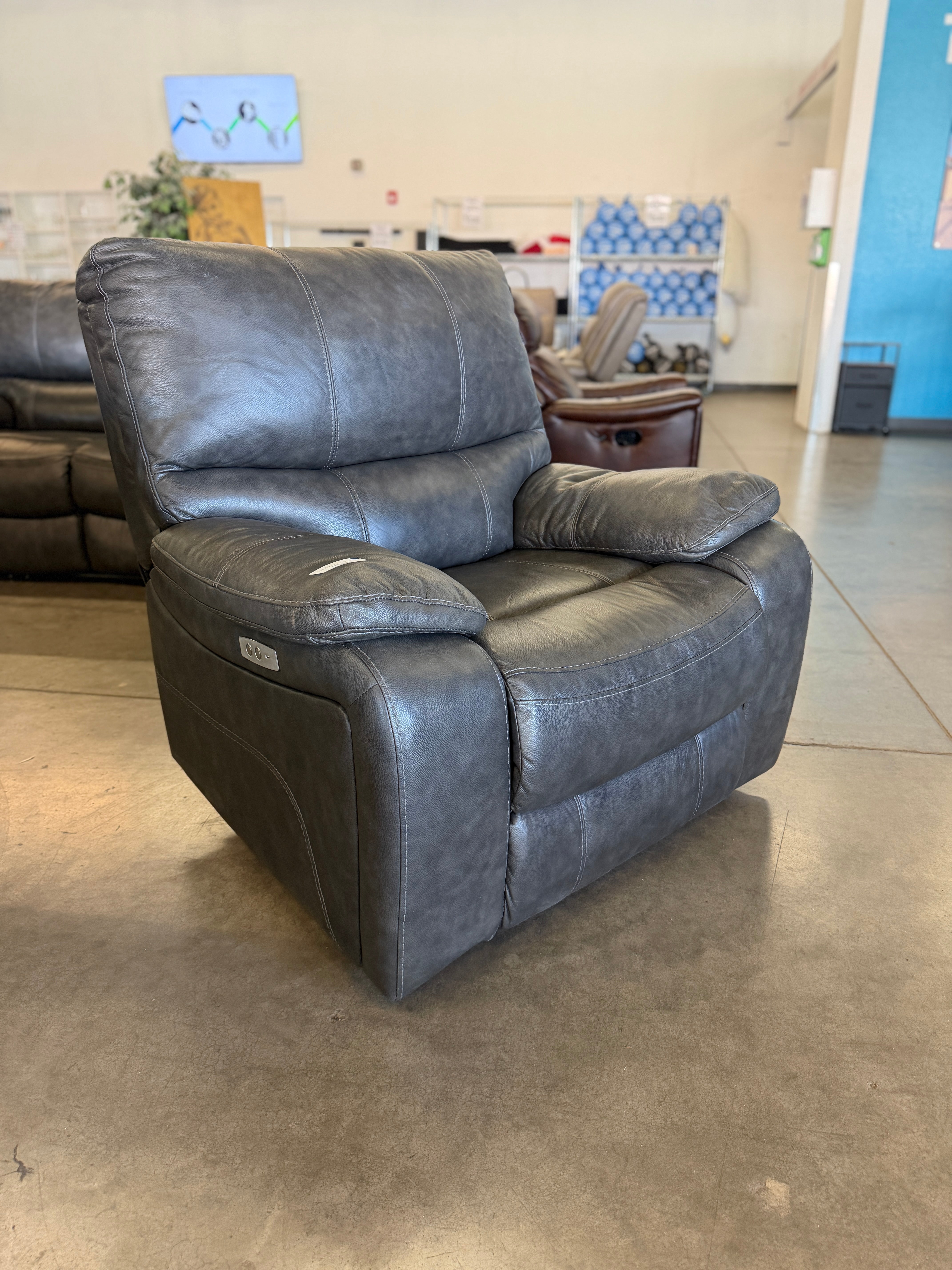 06885 Luxurious Dark Gray Leather Recliner Chair - 30 Day Guarantee !