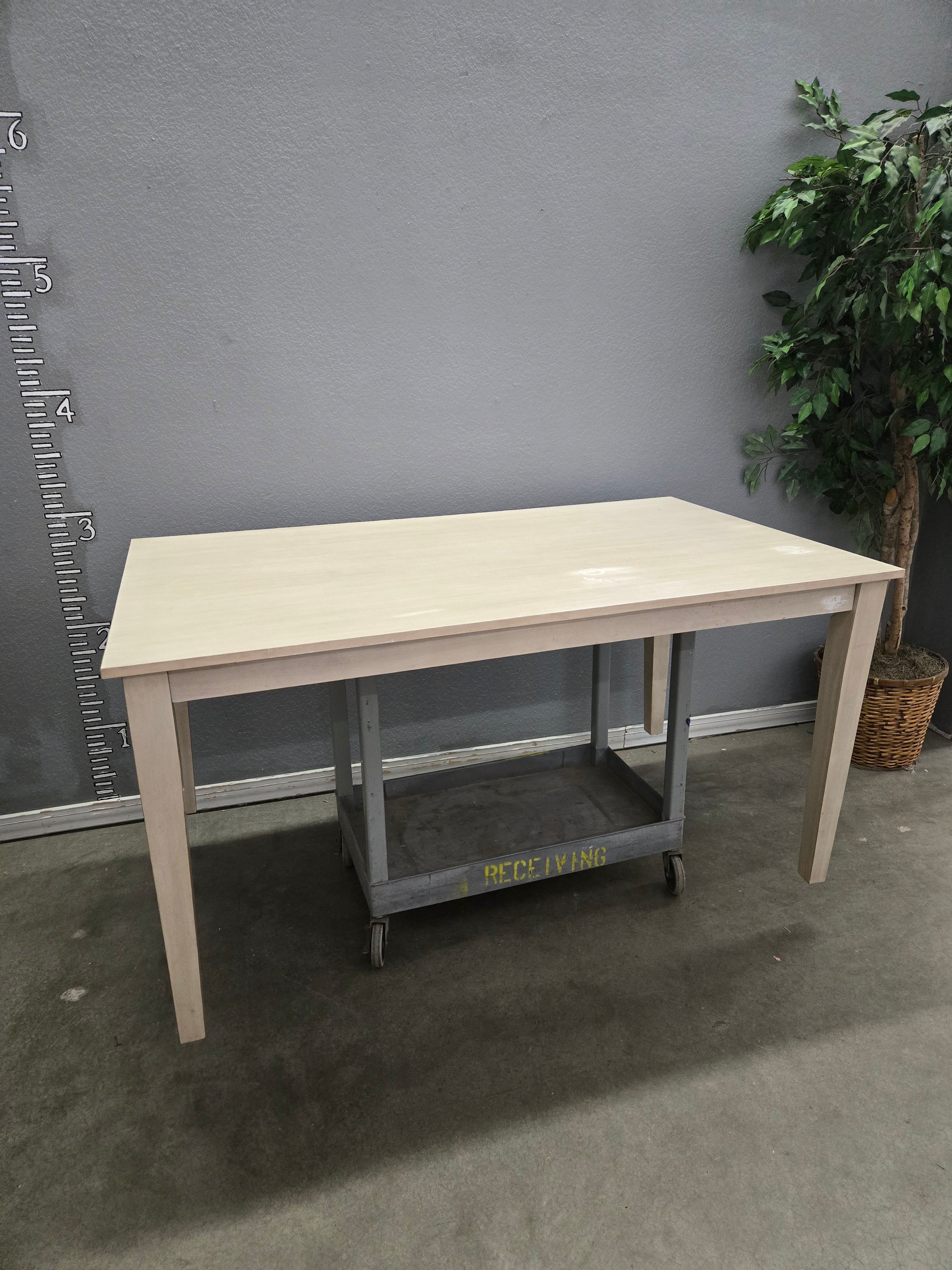 This elegant dining table features a light wood finish, bringing a touch of minimalistic design to any dining room setting. Its smooth surface and sturdy construction make it ideal for family meals or workspaces. Approximate Size: 2.5 x 5 x 3