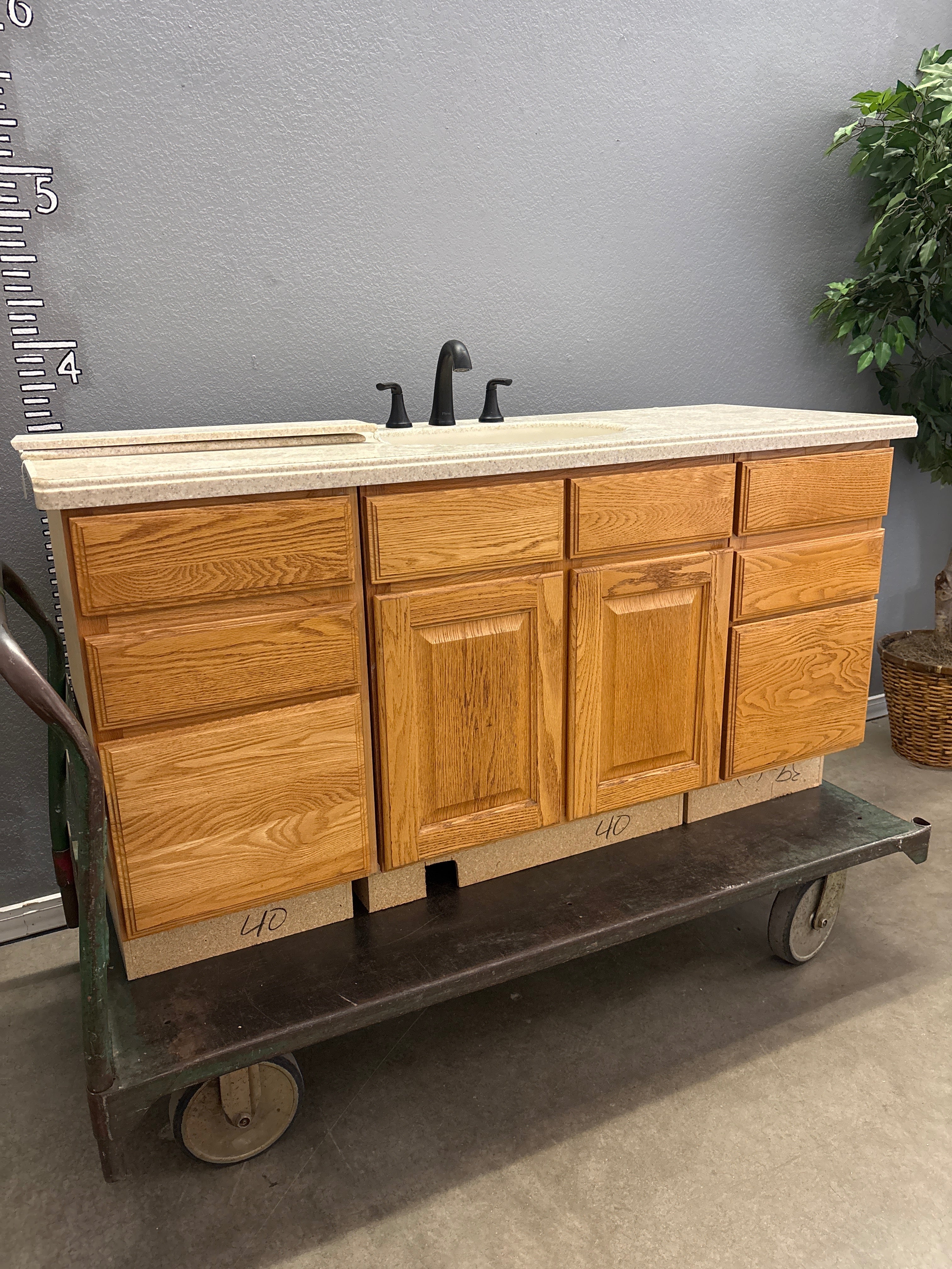 89837 Oak Bathroom Vanity with Marble Top and Faucet