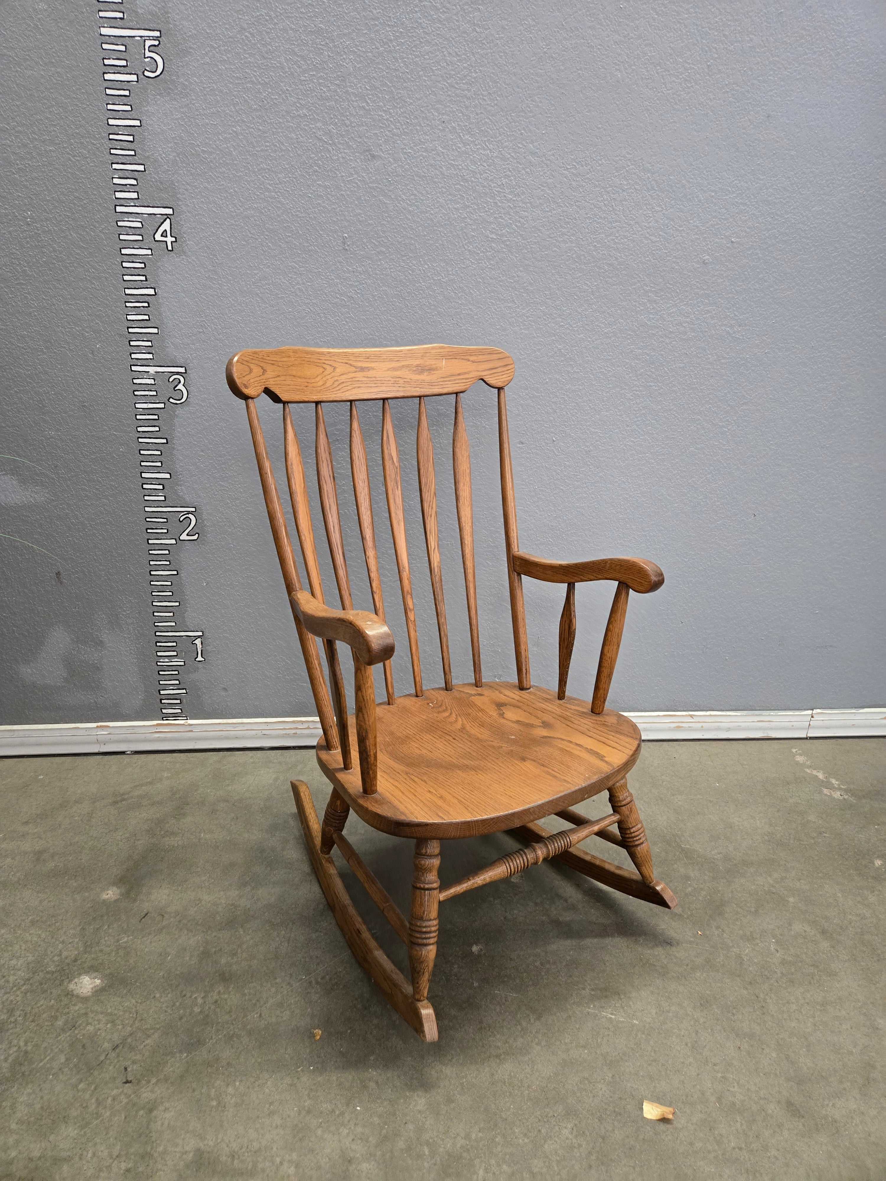 This charming rocking chair features a natural wooden finish, showcasing the beauty of its material. The smooth curves and classic design make it a perfect addition to any living space. Approximate Size: 3 x 1.5 x 2