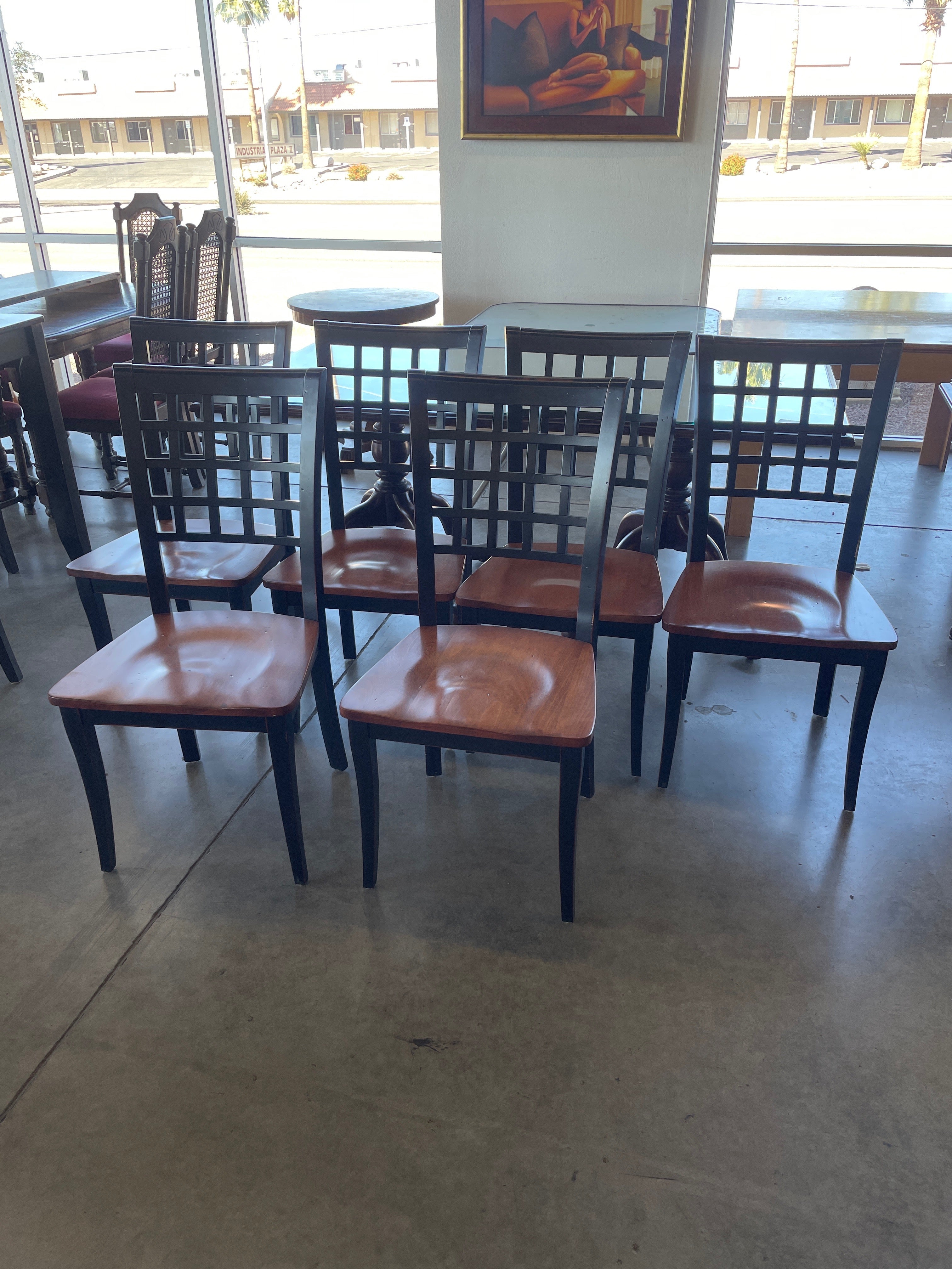 These elegant dining chairs feature a stylish combination of black and natural wood finish. The seats are crafted with smooth, natural-color wood, providing a warm contrast to the black lacquered frame. Perfect for blending into any dining room decor with a hint of classic sophistication. Approximate Size: 3 x 1.5 x 1.5