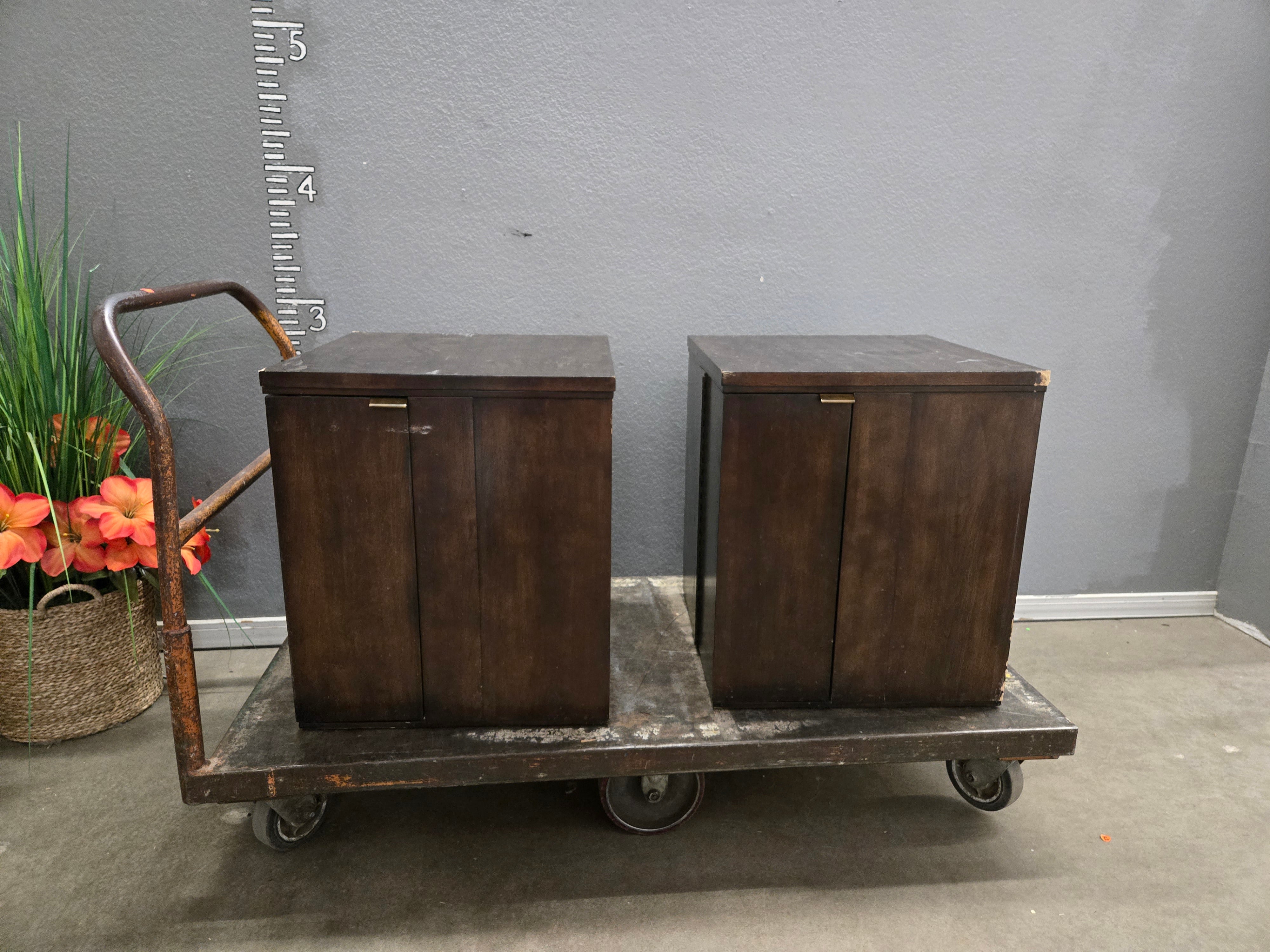 83916 Pair of Vintage Dark Wood End Cabinets