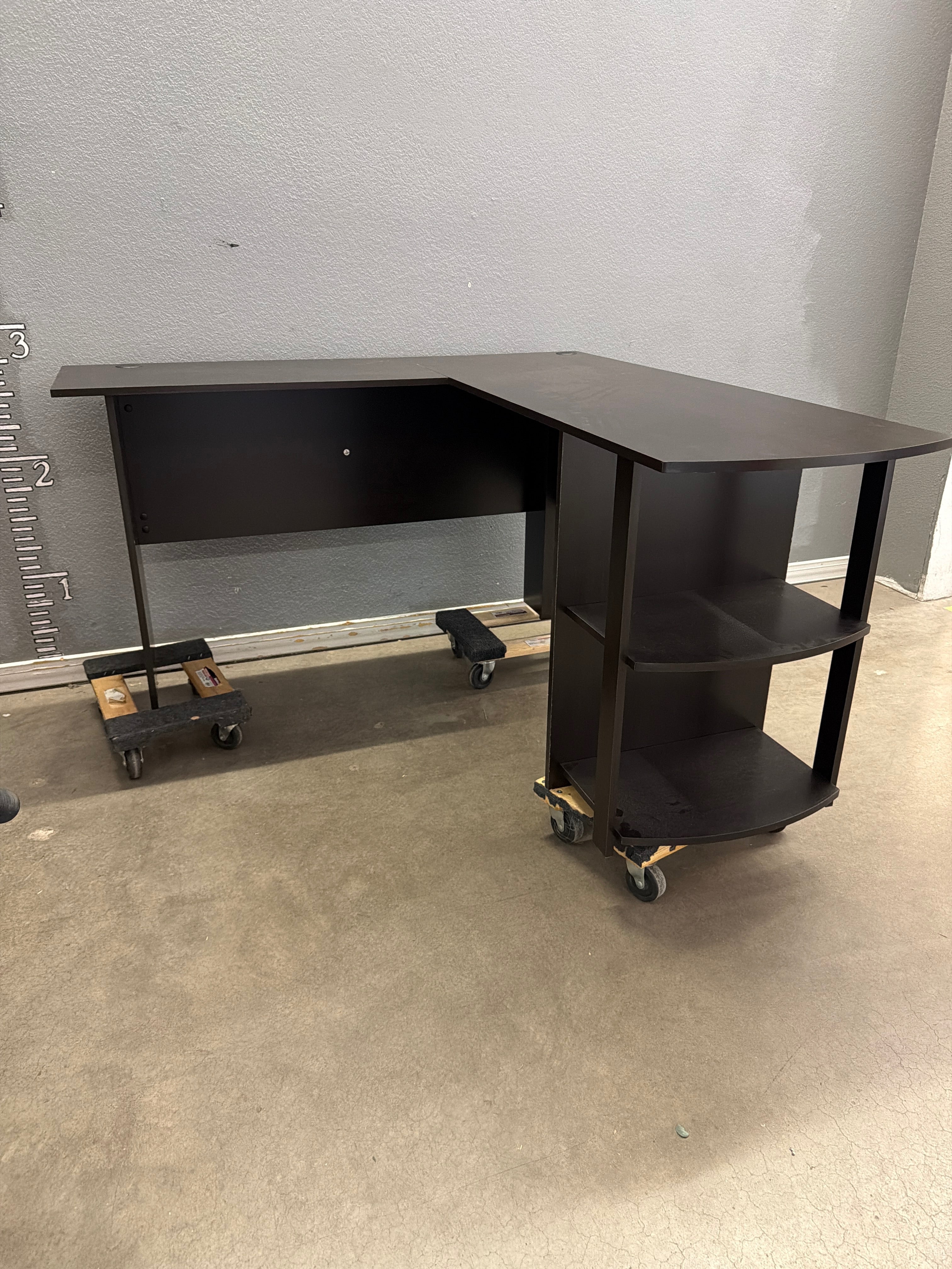 63340 L-Shaped Dark Wood Office Desk with Shelves *wheels Not Included*