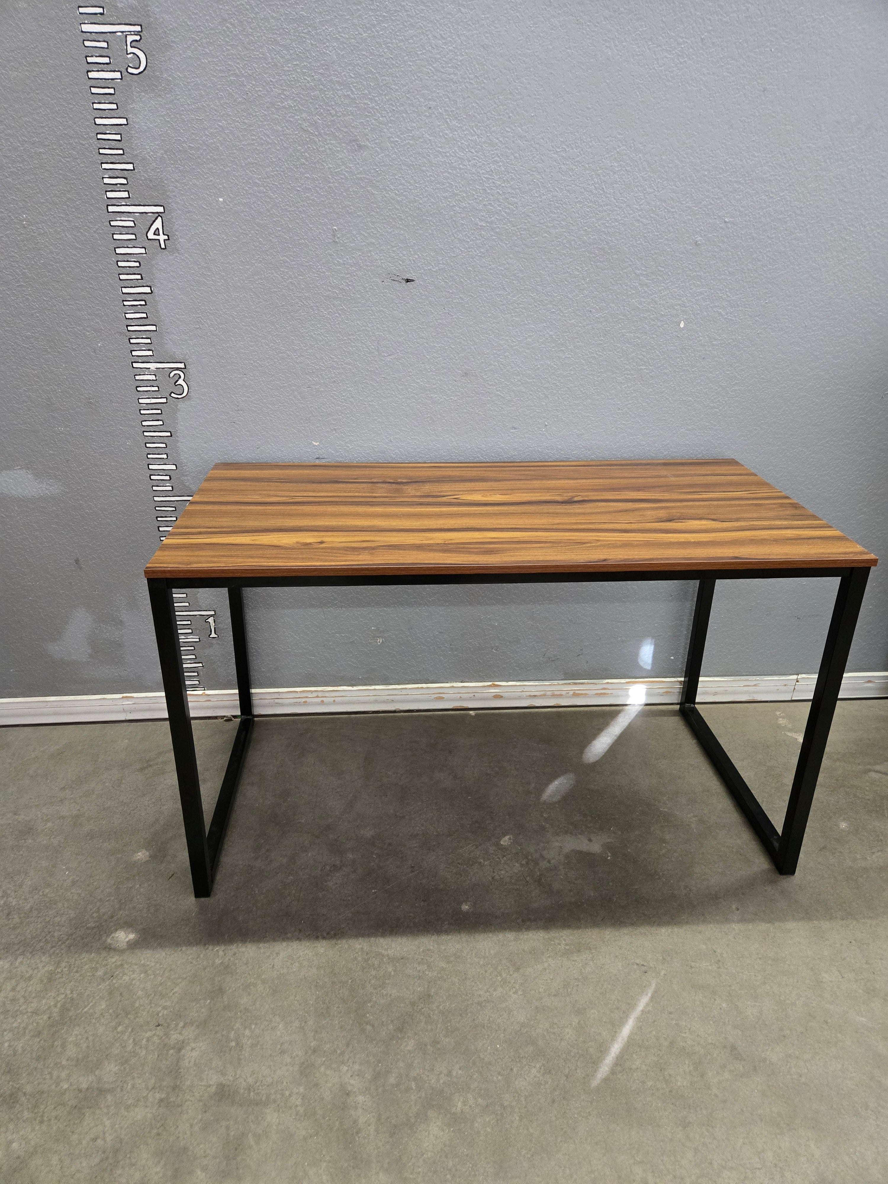 This sleek writing desk features a walnut-finished wooden top paired with sturdy black metal legs. The smooth finish gives a contemporary feel, perfect for modern living spaces. Approximate Size: 3 x 4 x 2