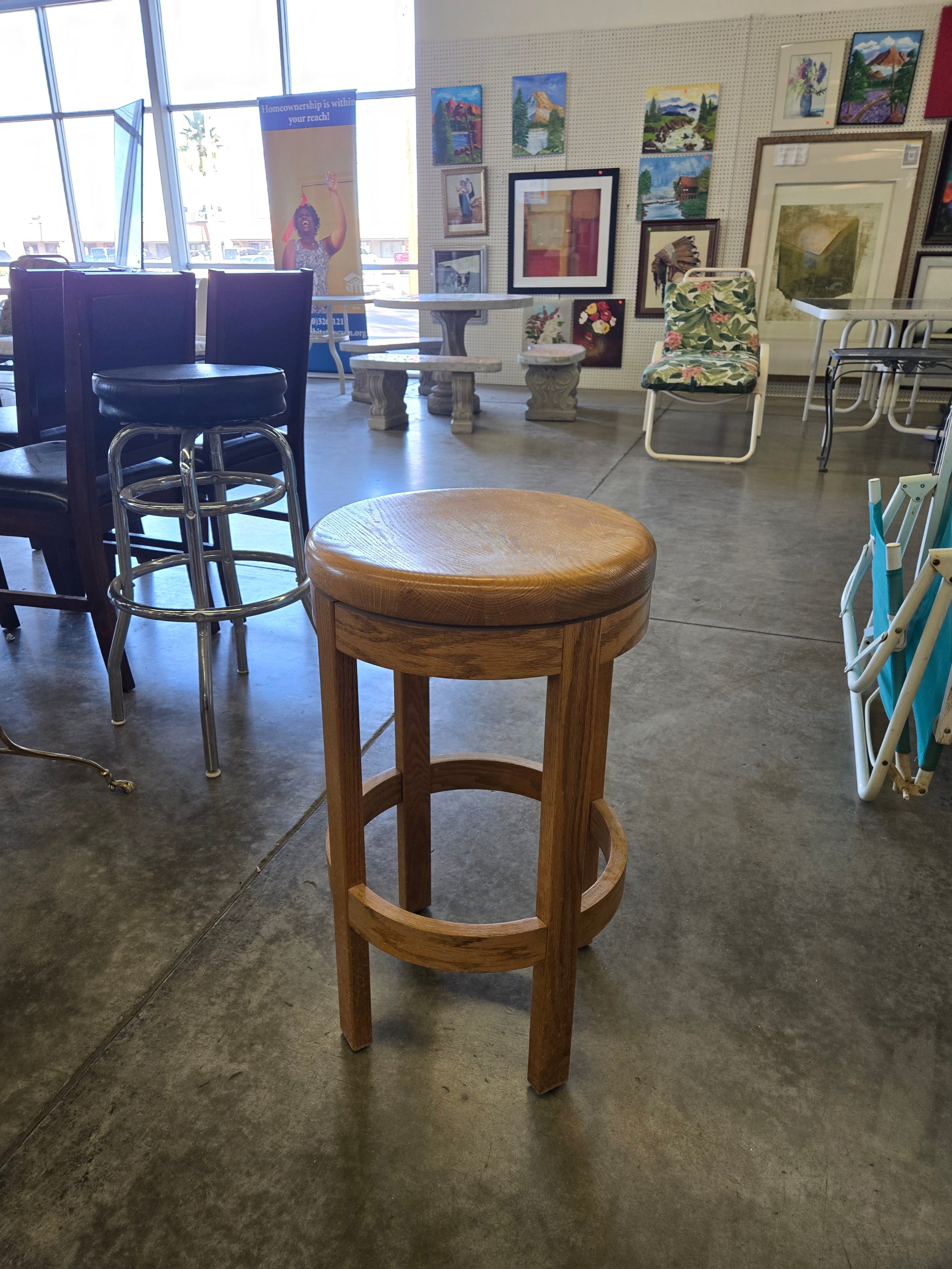 This sturdy bar stool features a classic oak finish that complements any bar or kitchen interior. The smooth wooden seat and durable wooden legs provide both comfort and stability, making it a reliable choice for everyday use. Approximate Size: 2.5 x 1.5 x 1.5