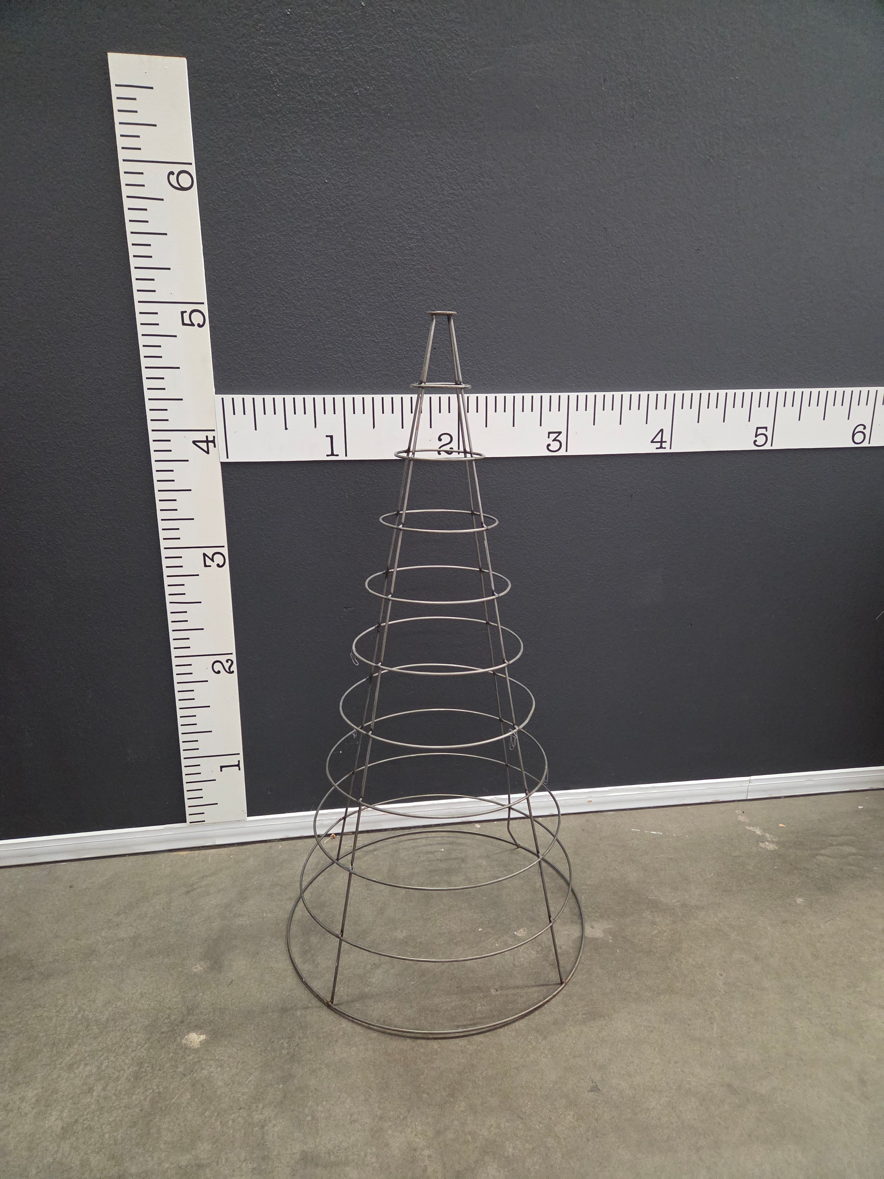This wire cone frame is designed for supporting plants both indoors and outdoors. It features a metallic finish and a sturdy wire construction, ideal for guiding the growth of climbing plants or providing general plant support. Approximate Size: 4 x 2.5 x 2.5