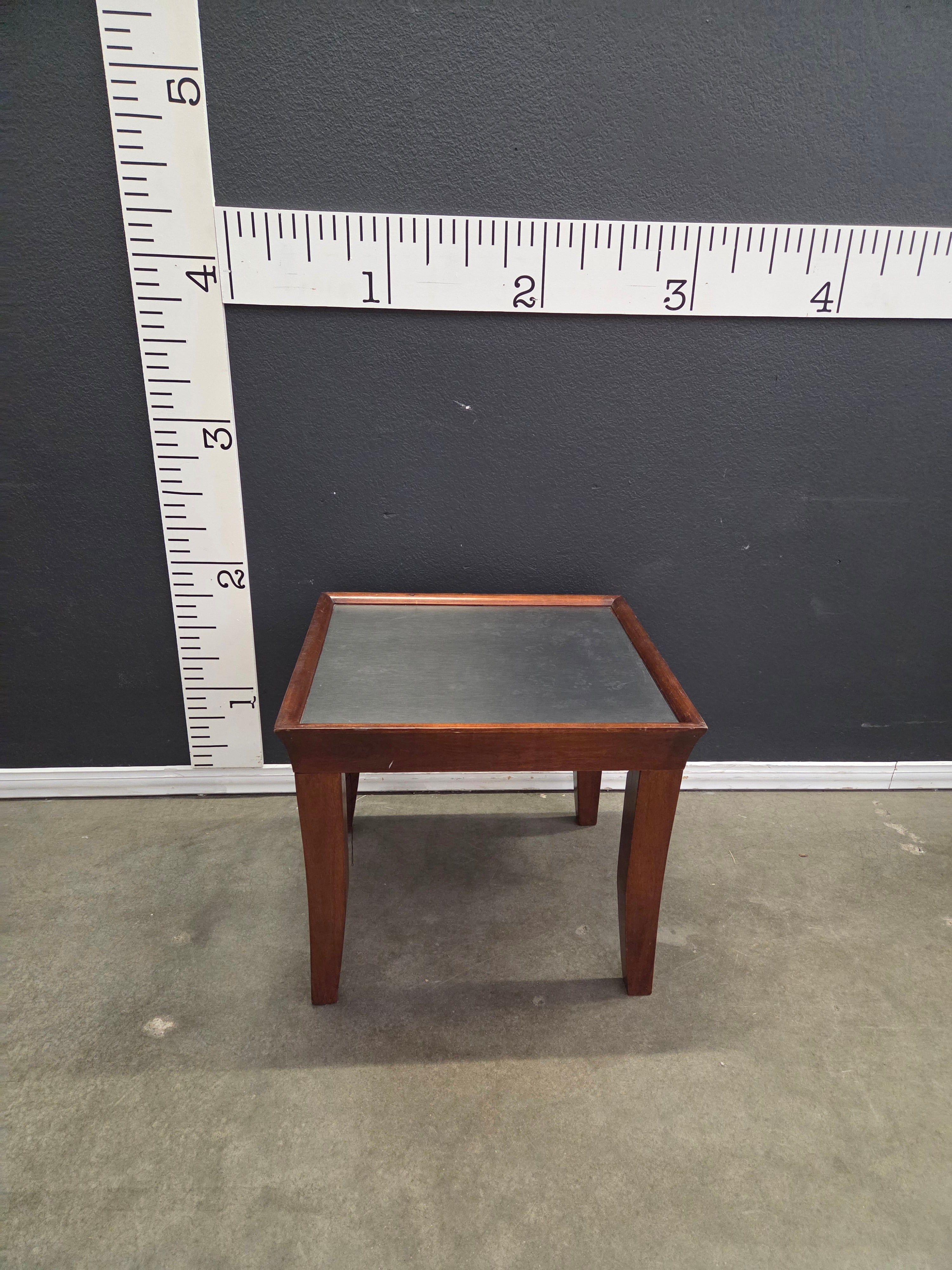 This elegant end table features a rich brown wood frame with a sleek black top, offering a classic and modern style. The wood finish is smooth and polished, perfect for any living space. Approximate Size: 1.5 x 2 x 2