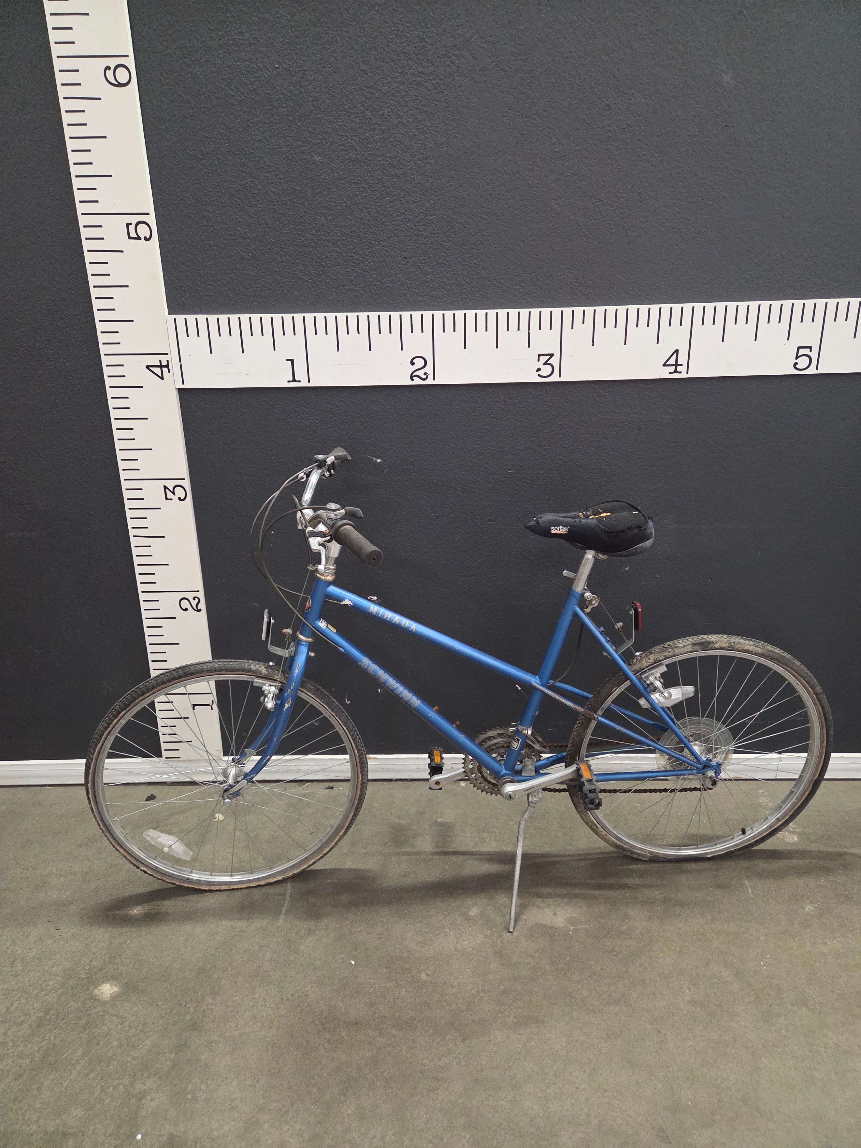Classic mountain bike with a vibrant blue frame and a durable finish. Ideal for outdoor adventures. Approximate Size: 3 x 6 x 2