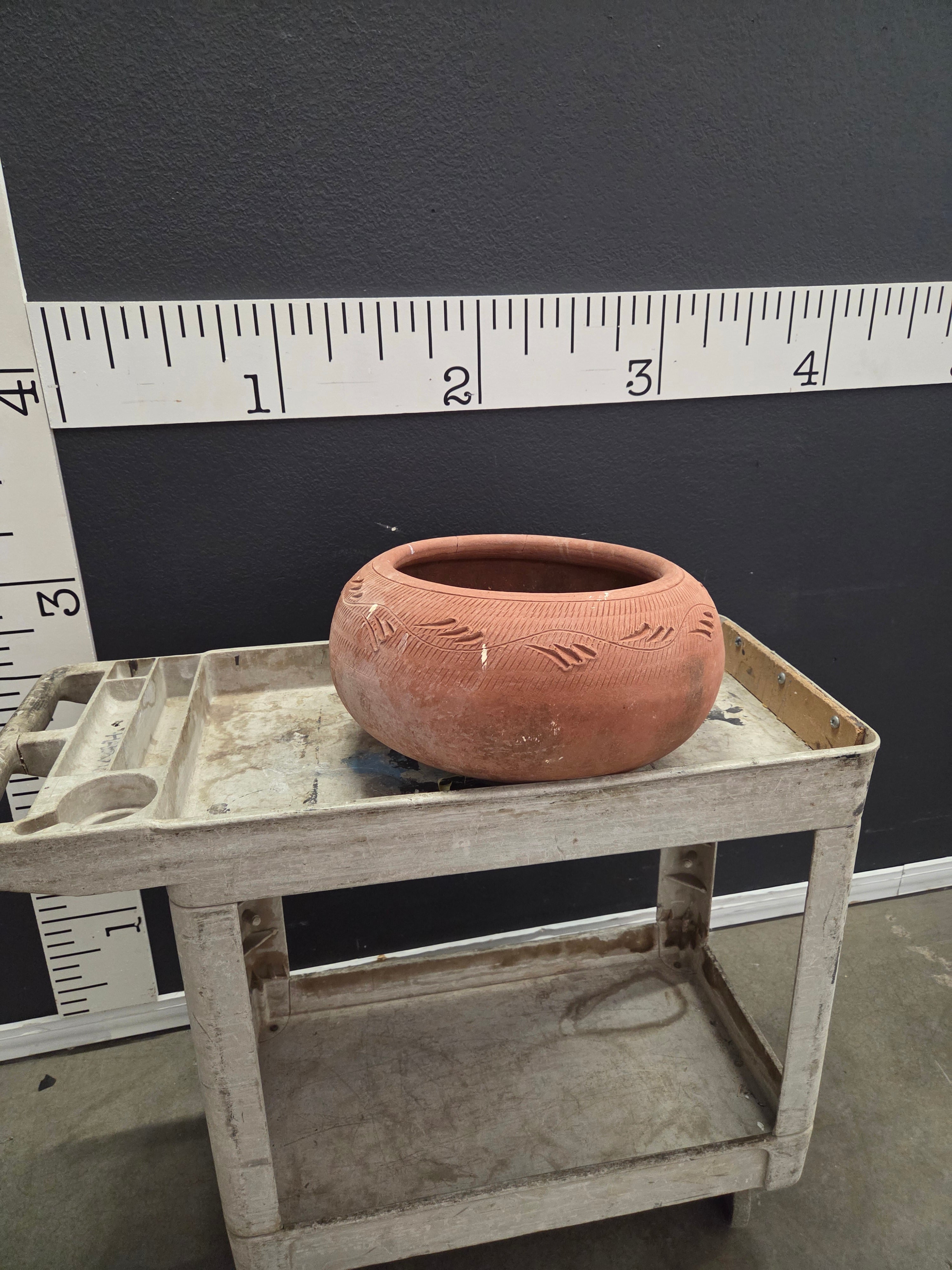 This beautifully crafted terracotta bowl features an intricate etched design with a rustic finish, ideal for enhancing your indoor décor. The rich, earthy hue of the terracotta adds warmth and a natural element to any setting. Approximate Size: 0.7 x 1.5 x 1.5