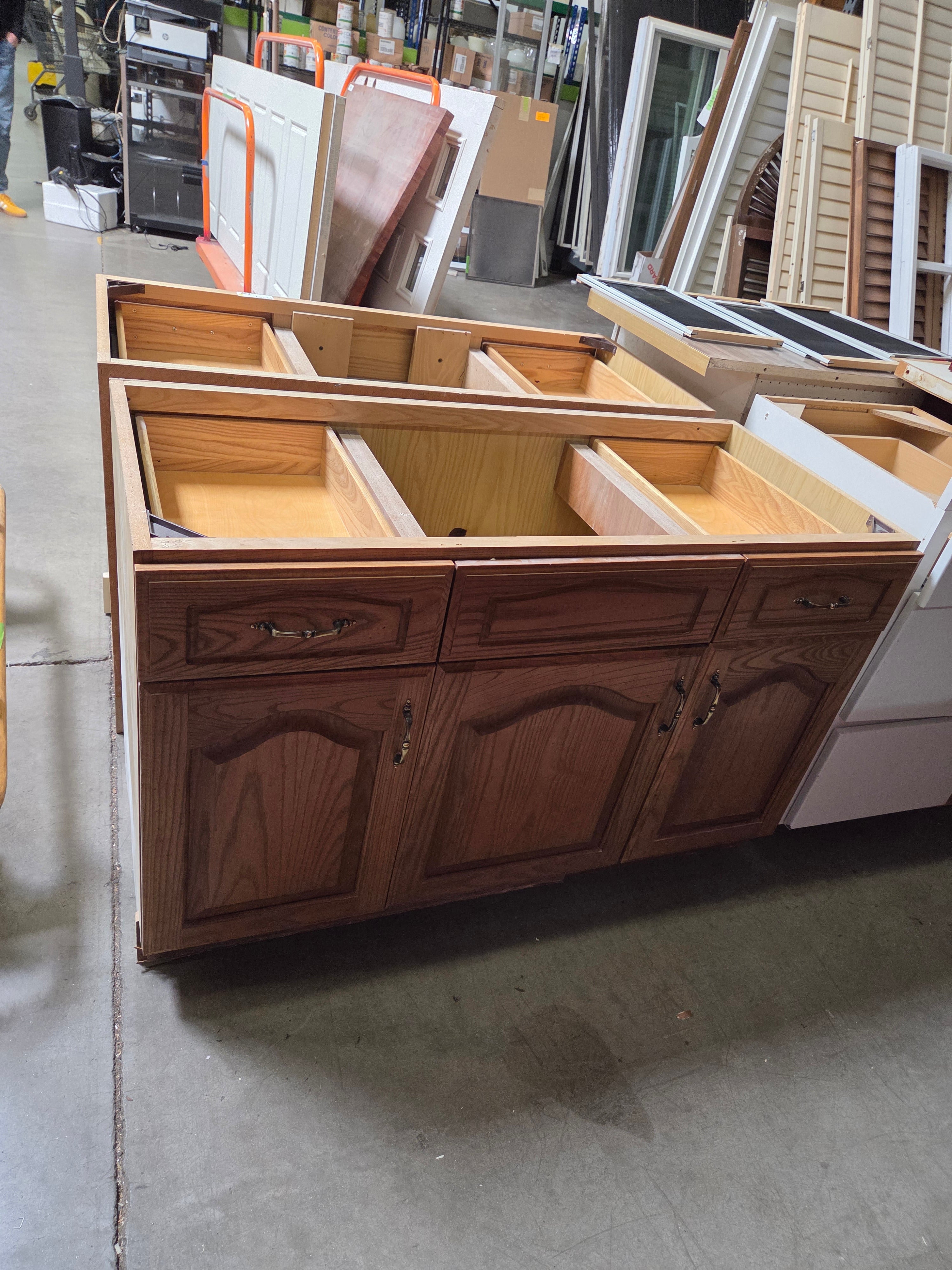 A robust kitchen cabinet crafted from rich oak wood, showcasing a smooth and polished finish in a warm brown tone. Ideal for adding a touch of traditional elegance to your kitchen space. Approximate Size: 3 x 5 x 2