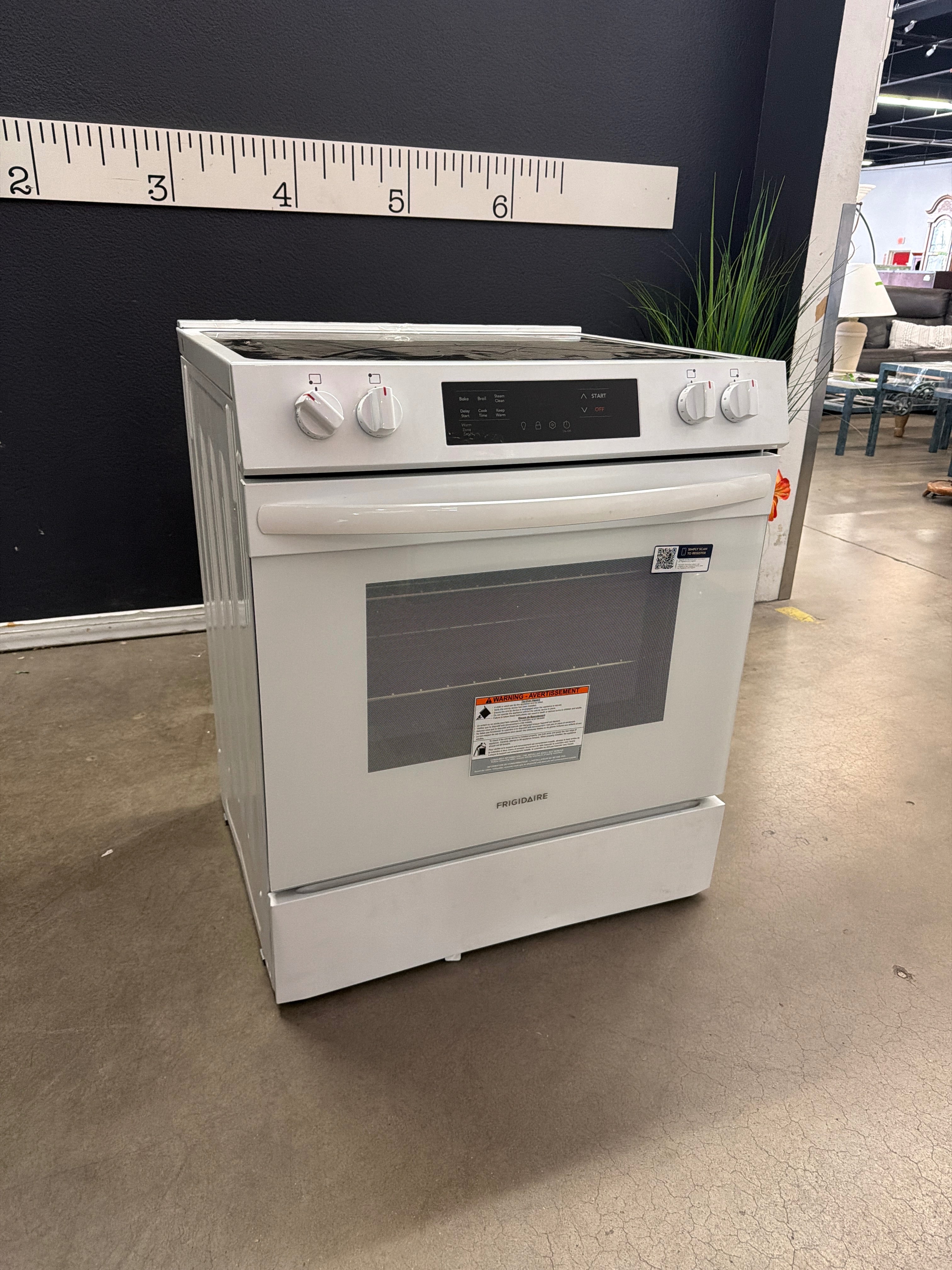 This electric range from Frigidaire features a sleek white color and a smooth finish, perfect for modern kitchens. It offers a user-friendly interface with easy-to-use knobs and a spacious oven for all your cooking needs. Approximate Size: 3 x 2.5 x 2.5