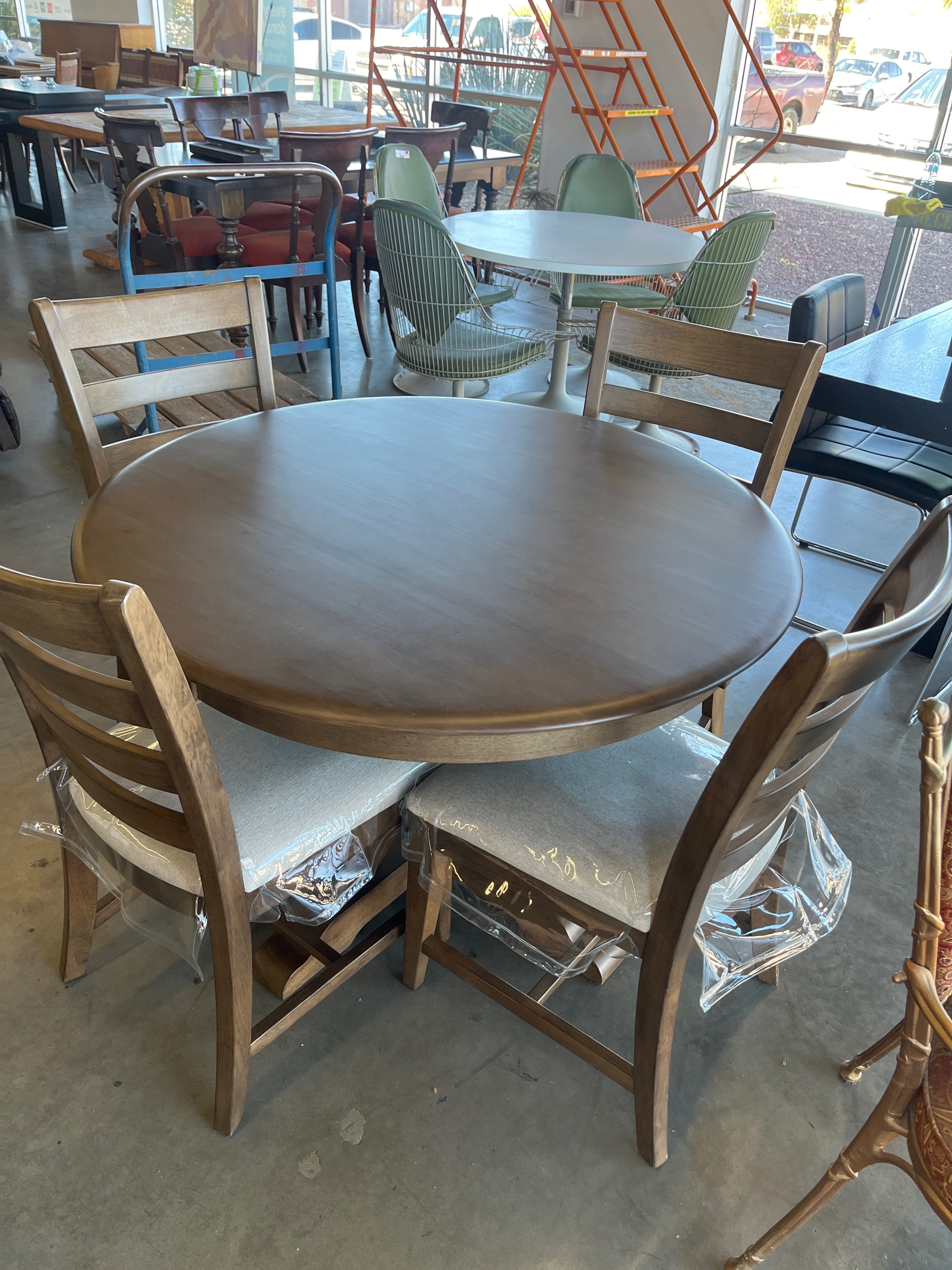80170 Round Wooden Dining Set with Ladder Back Chairs