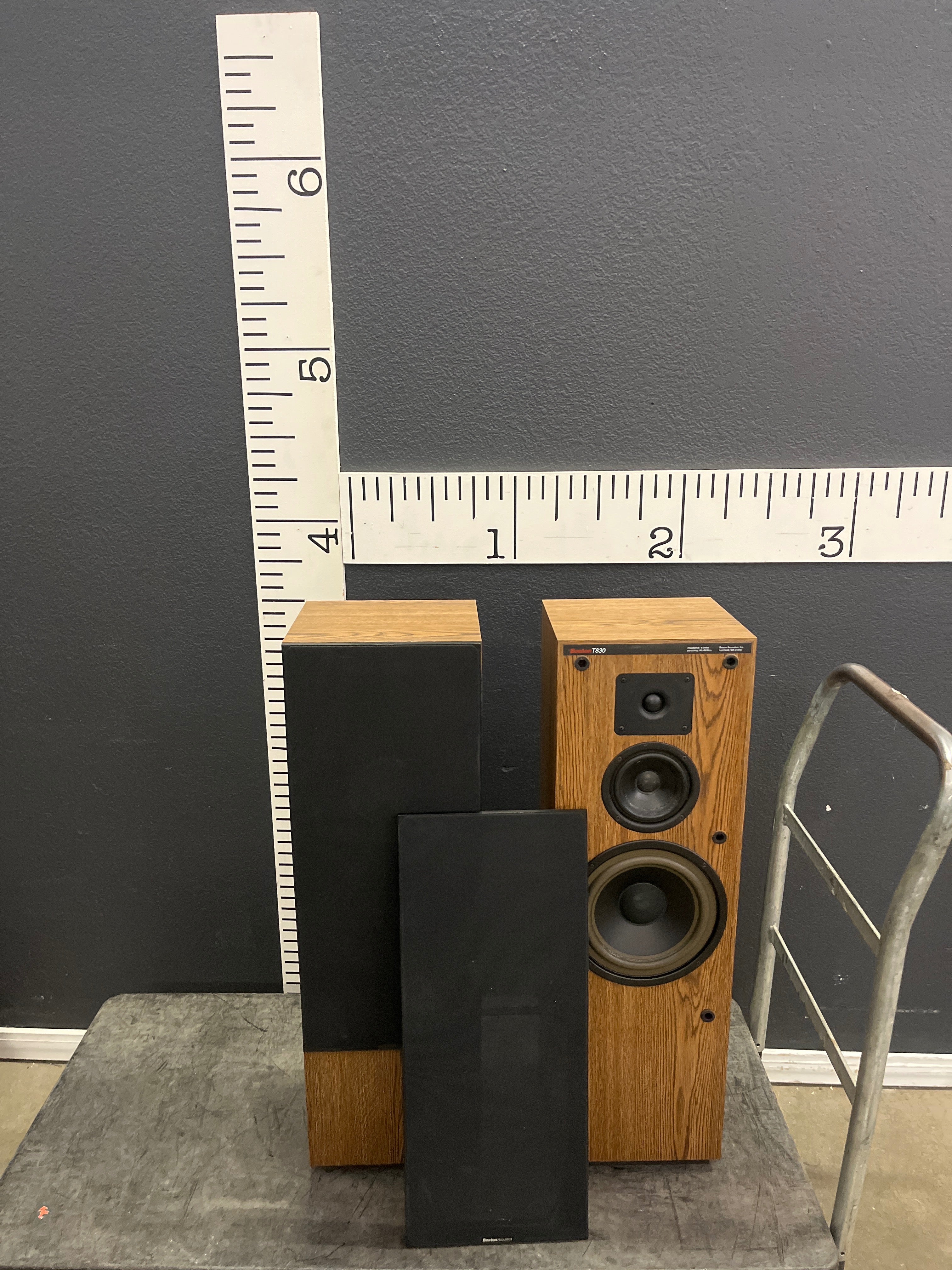 These vintage speakers feature a classic wooden finish with black front panels. Their timeless design adds elegance to any room while providing excellent sound quality. Approximate Size: 3 x 1 x 1