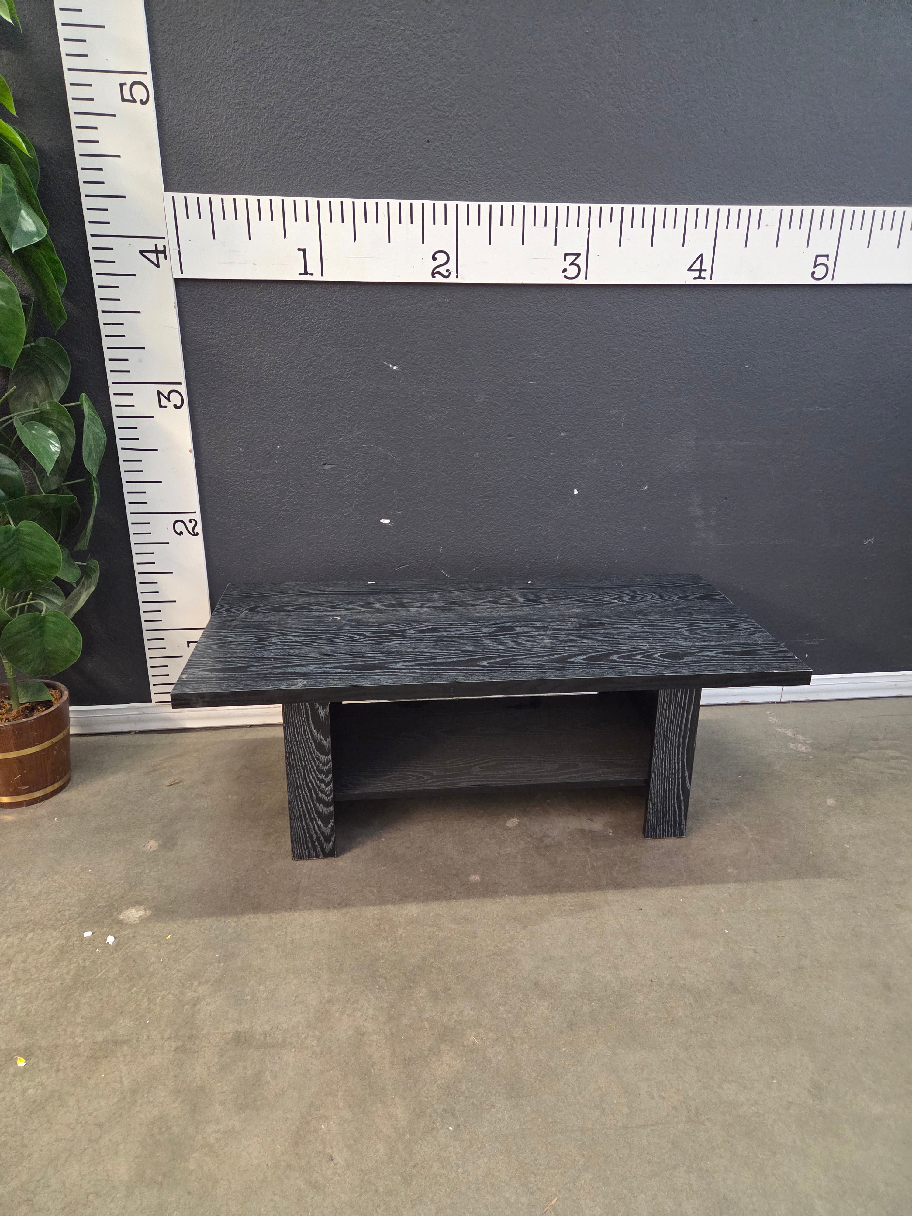 This sleek coffee table features a black wood finish that adds a touch of elegance to any living room. The table has a smooth top surface with sturdy legs, designed to provide both style and functionality. Approximate Size: 1 x 4 x 2