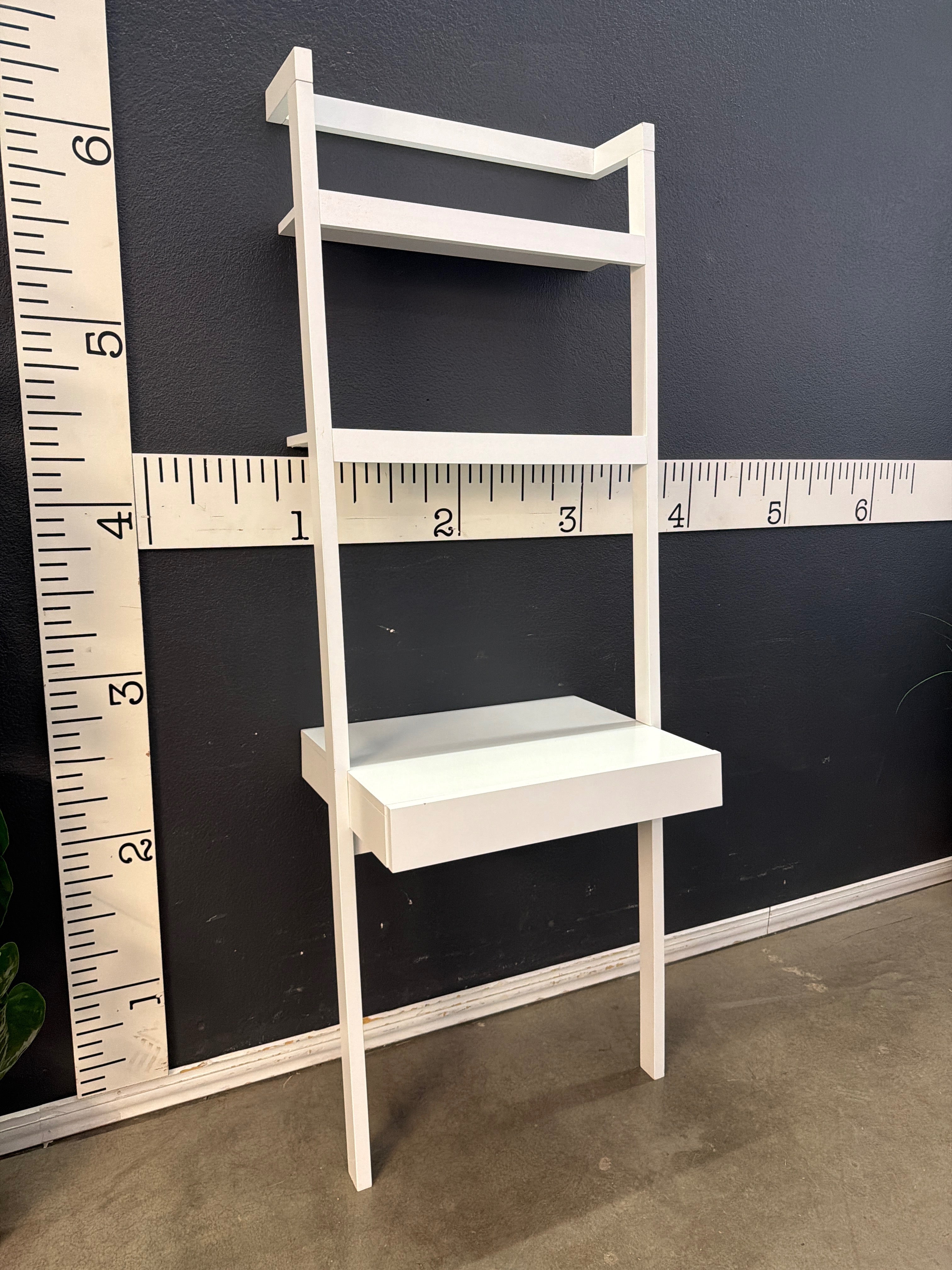05912 Modern White Ladder Shelf with Drawer