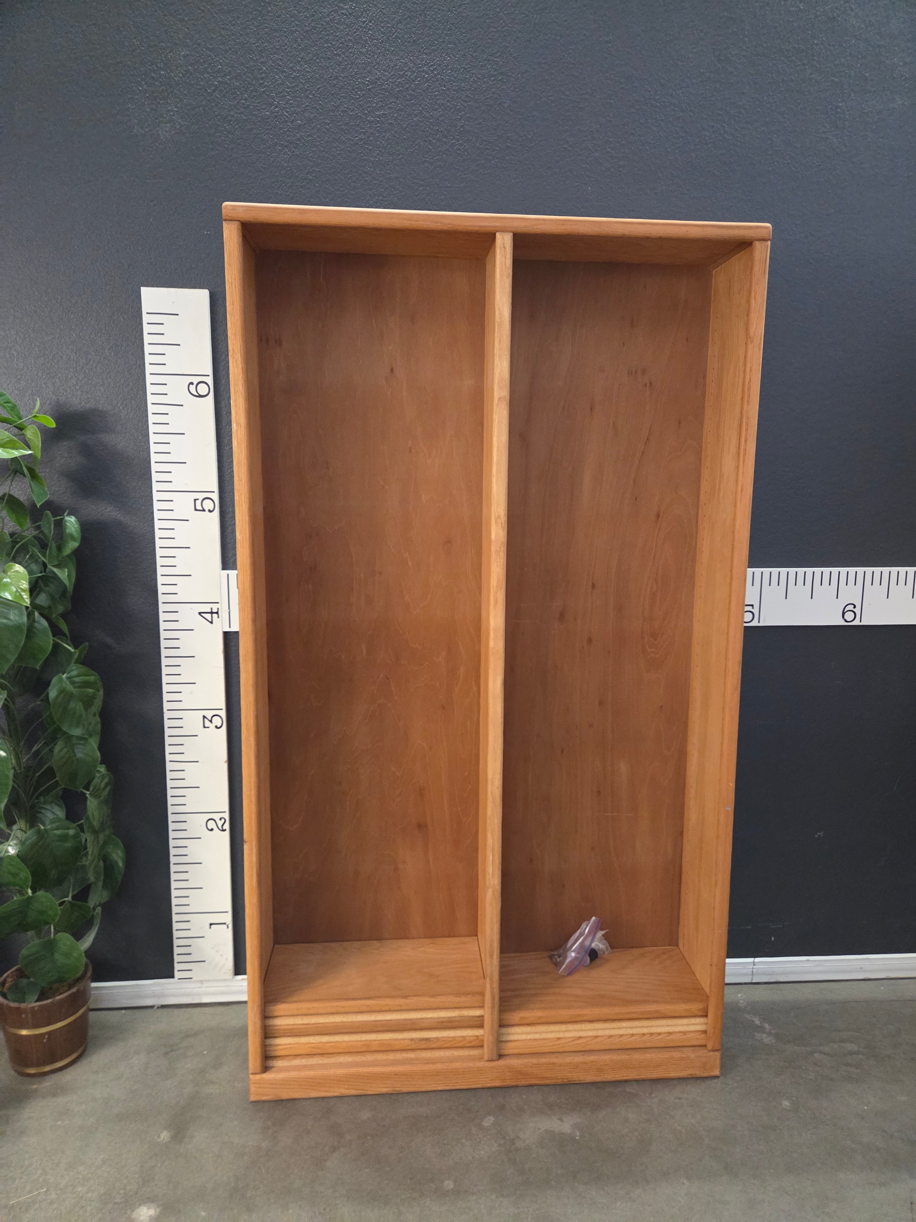 Natural finish wooden cabinet with two spacious compartments, ideal for organizing and storage. The warm wood tone adds a classic touch to any space. Approximate Size: 5 x 3 x 1